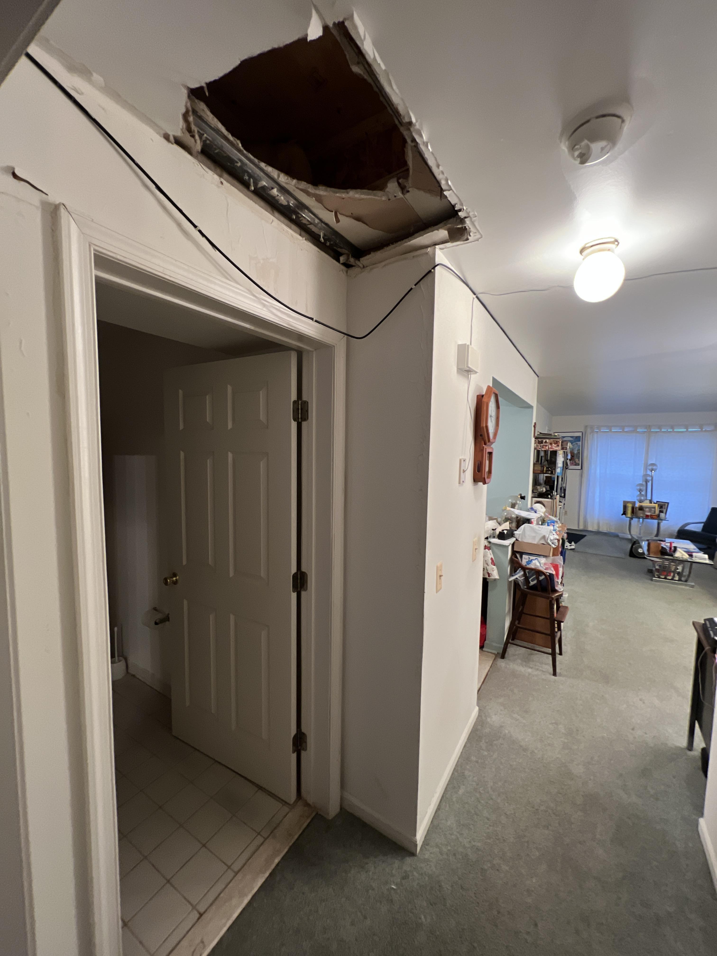 Aiden F. experienced major water damage in his Mountain Lakes home after a sudden water pipe break from a failed HVAC discharge line caused multiple burst pipes behind the second-floor bathroom wall. The resulting flooding saturated drywall, wet insulation, and several areas of wood floor water damage, creating rapid moisture ...