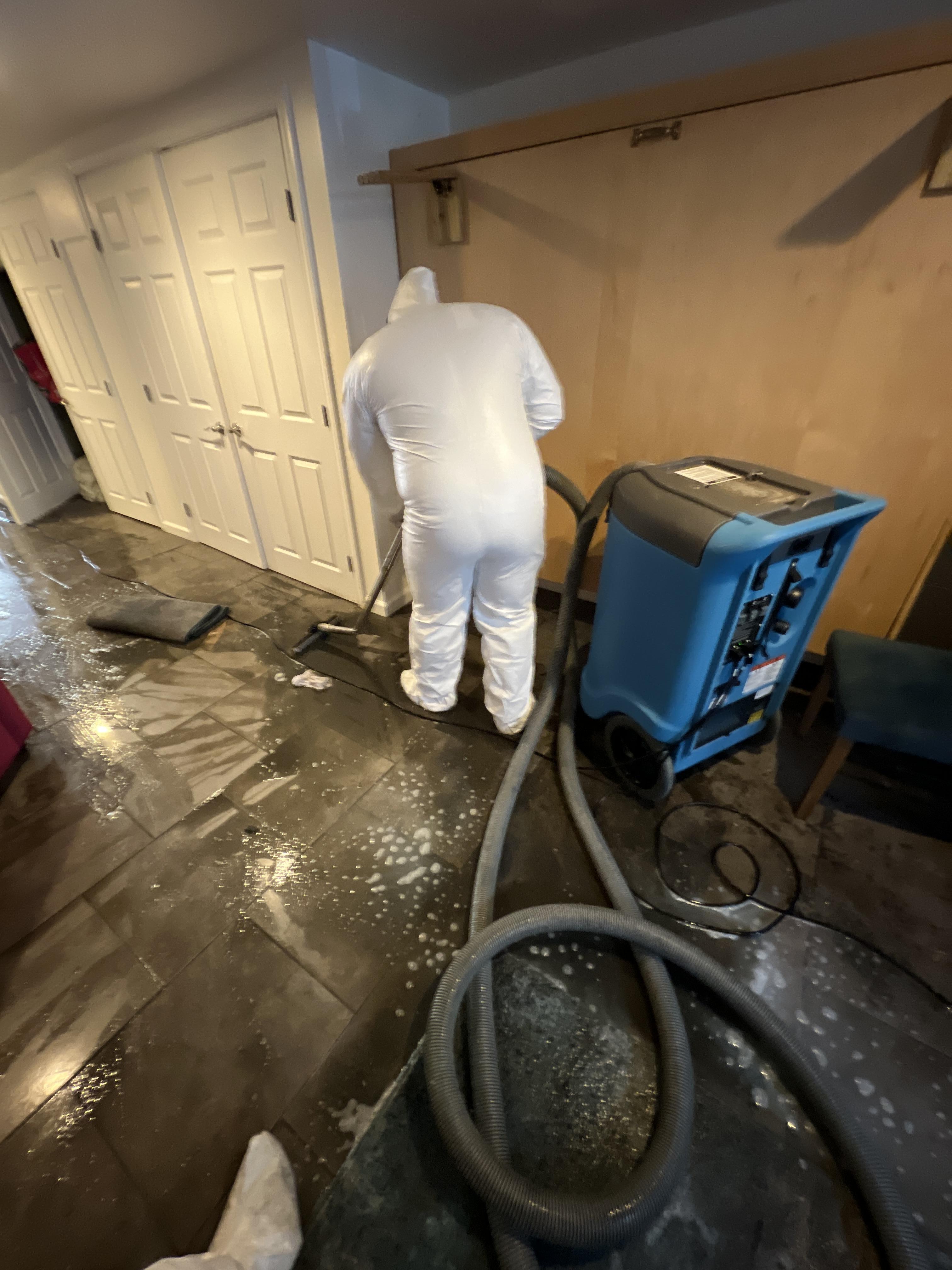 Martin H. experienced significant water damage in his Boonton home after a failed main water line caused a rapid basement flood that soaked the carpet and saturated the concrete subfloor beneath it. This Boonton water loss required immediate Water Extraction to stop further damage to the wet insulation, wood framing, ...