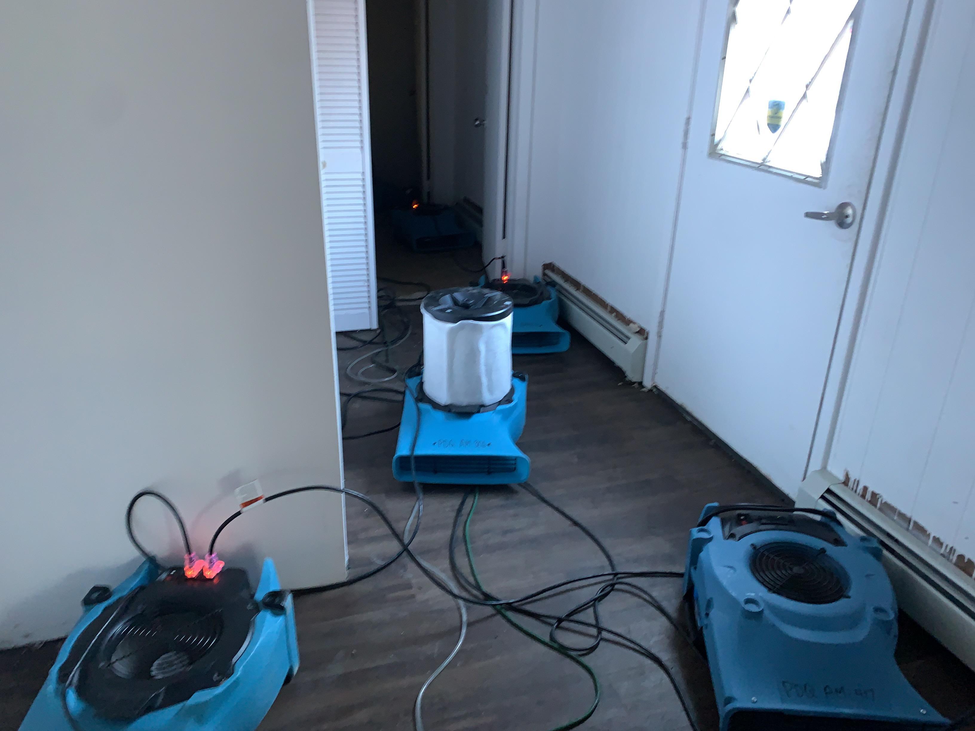 PDQ immediately began demo and removed the drop ceiling, insulation and wood flooring that was affected at the home in Ledgewood, NJ. Debris was then cleaned and antimicrobial was applied and drying equipment was setup to dry the building. Containment was also setup so the contents could be moved into another room and remain safe.