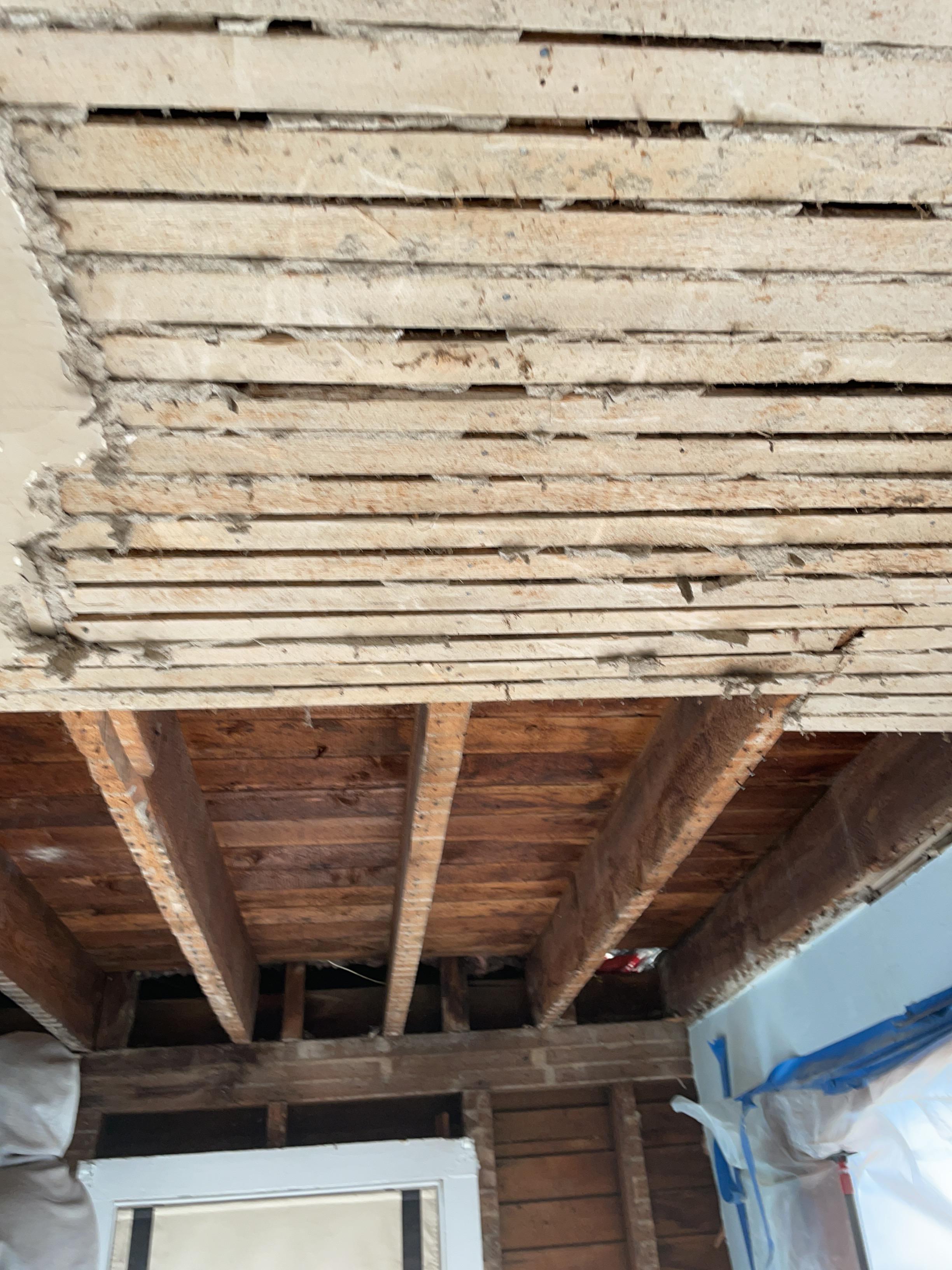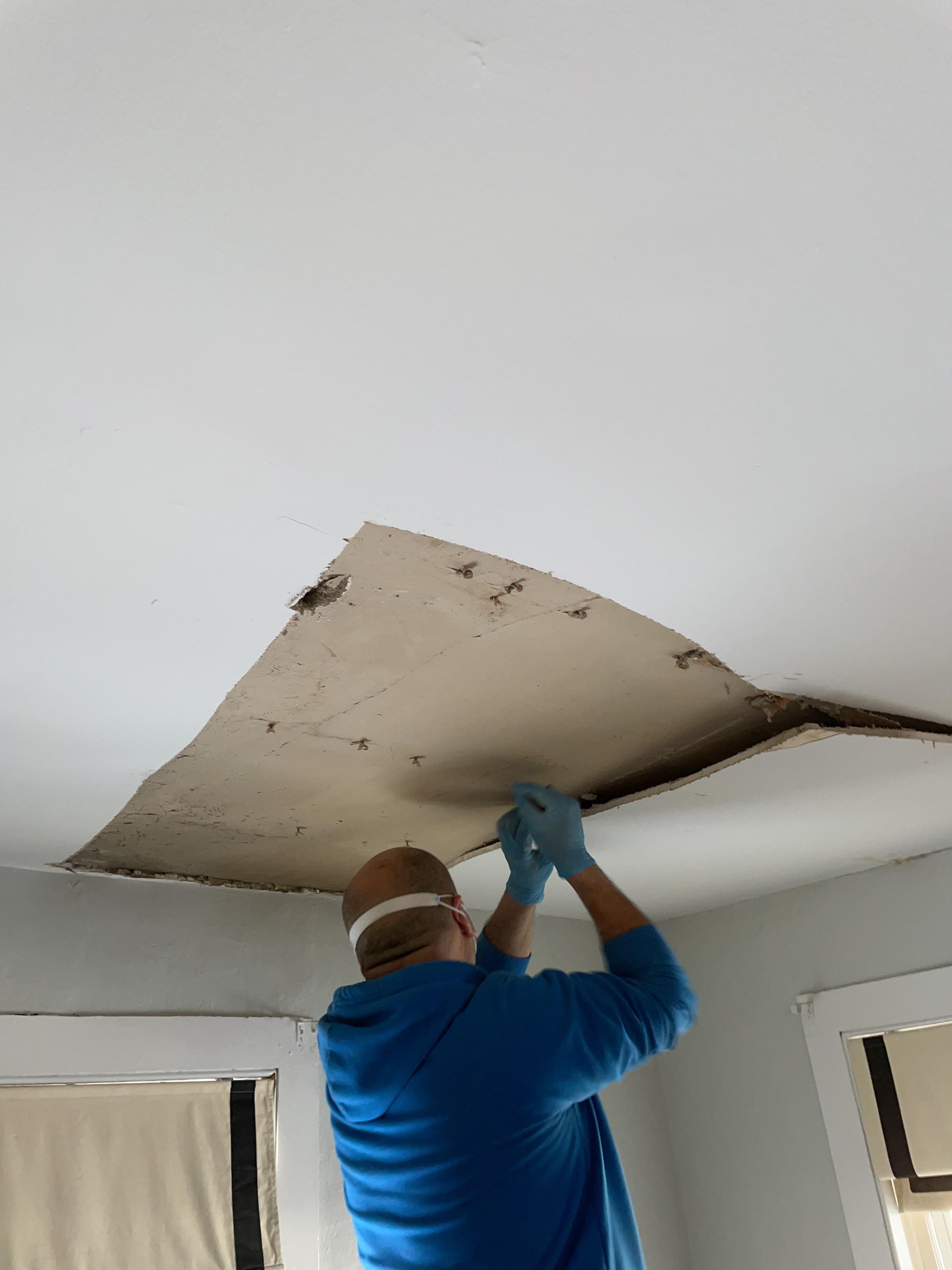 Tore out any damaged ceiling and drywall. Thoroughly cleaned the areas and applied antimicrobial to all affected areas. Set up air movers and dehumidifiers until the areas were dry at the home in Boonton, New Jersey.