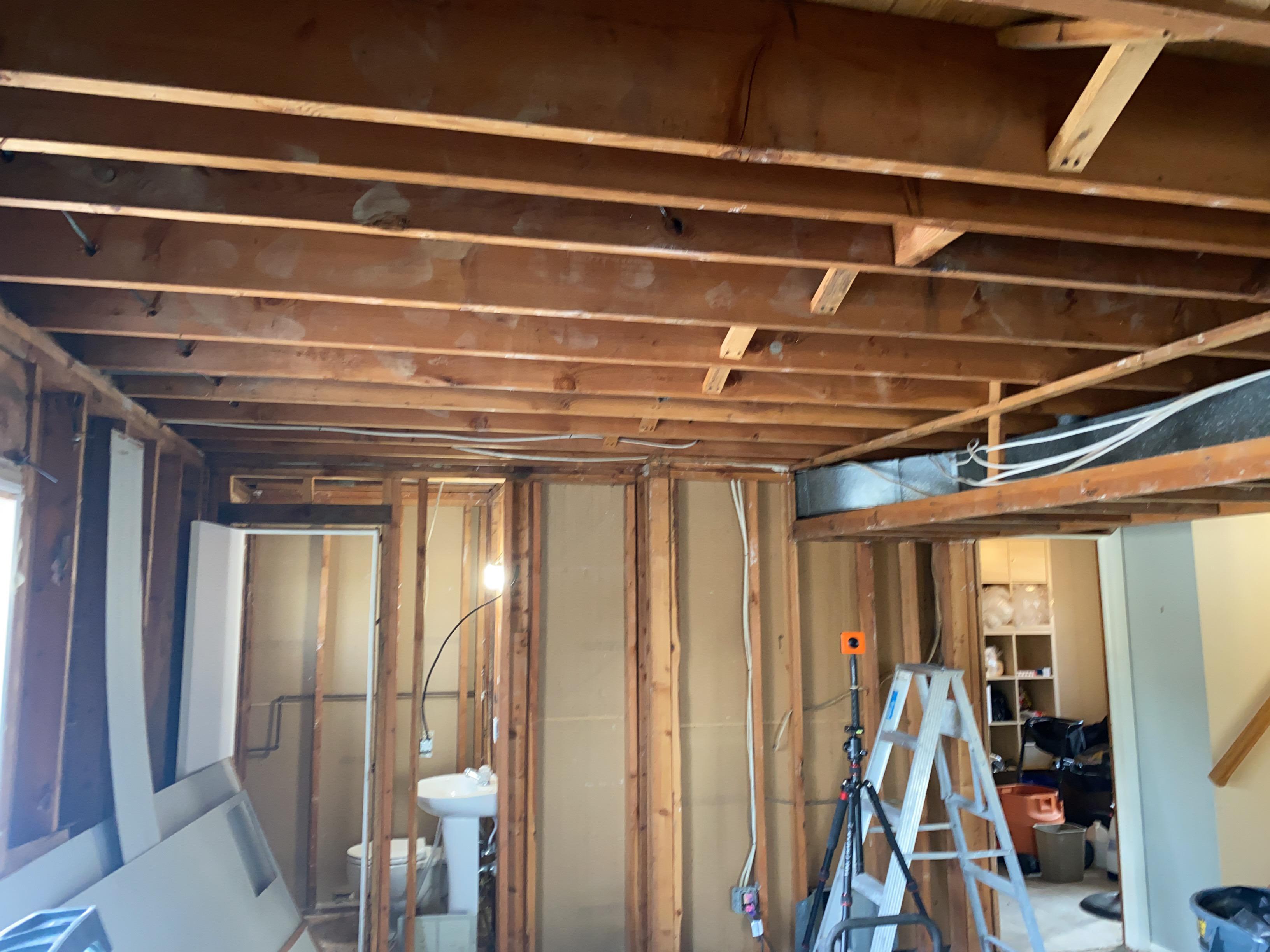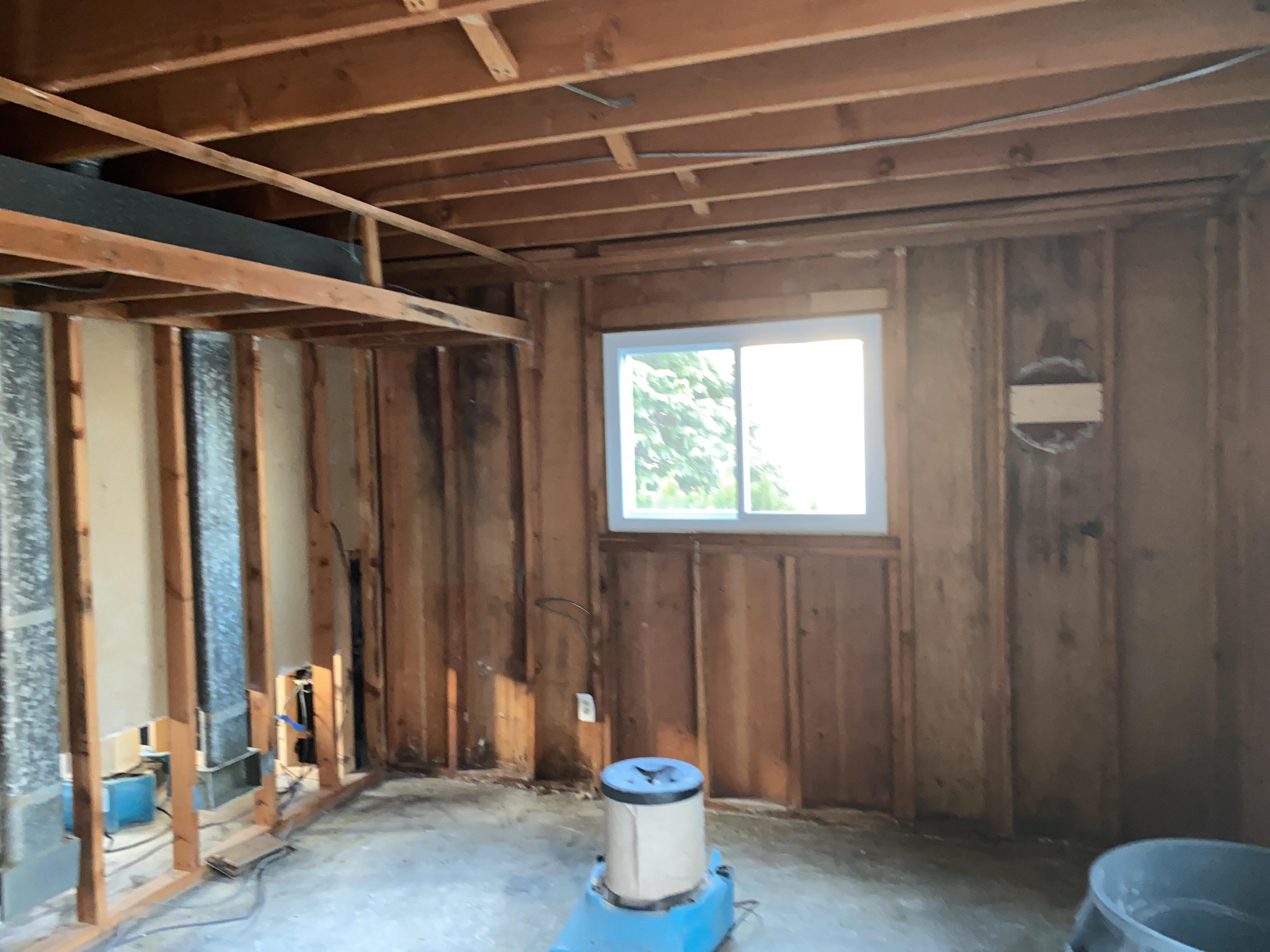 PDQ moved out any contents that were in the way, protect their furniture with plastic covering and closed off rooms to prevent debris from spreading throughout the house and basement at the home in Clinton, NJ. Air scrubbers were set up to filter the air, as the affected dry wall was removed. Air movers and dehumidifiers were run until the space was fully dry.