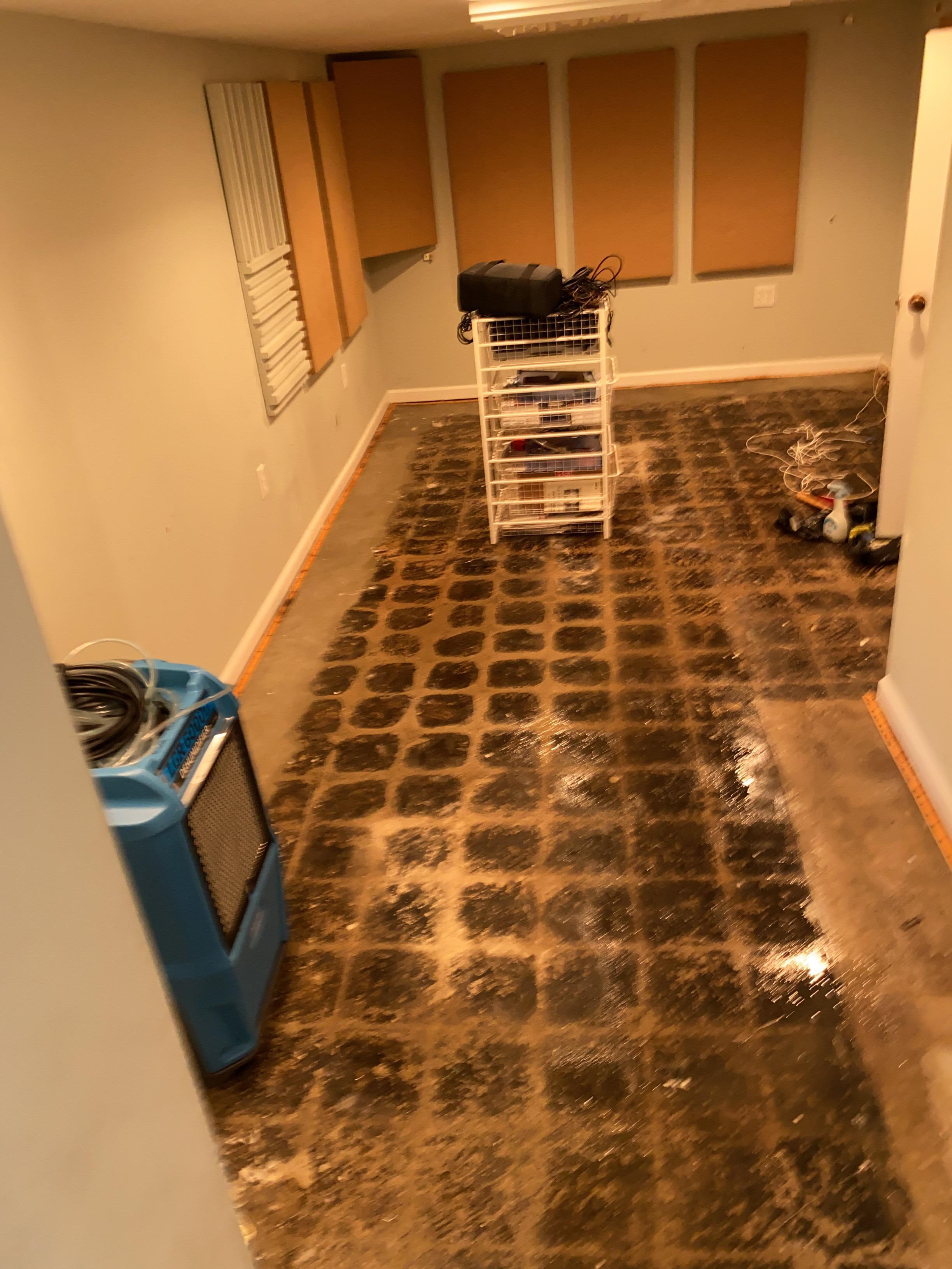 The customer from Verona, NJ was referred to us through a Google search. His sump pump failed and water got into this sound studio.