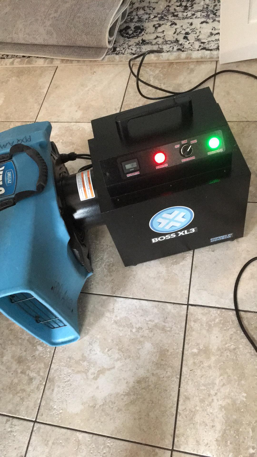 Our IICRC-certified technicians started immediately by setting up high-velocity air movers, commercial dehumidifiers, HEPA air scrubbers and Hydroxyls to begin drying and cleaning the area.