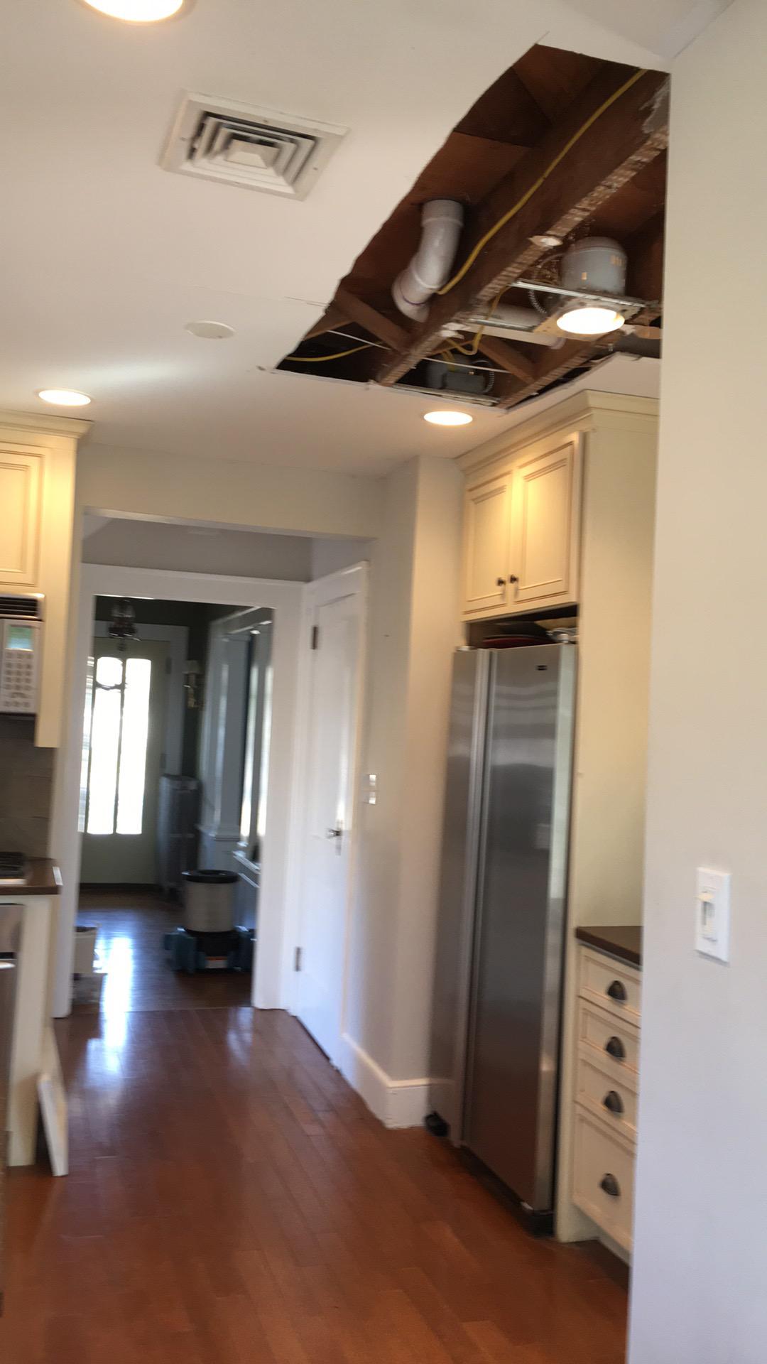 The Client from Oradell, NJ was referred to us through a friend. 2nd floor bathroom leaked and caused water to the room below, the kitchen. The Client’s main concern was how quickly we can begin the drying process.