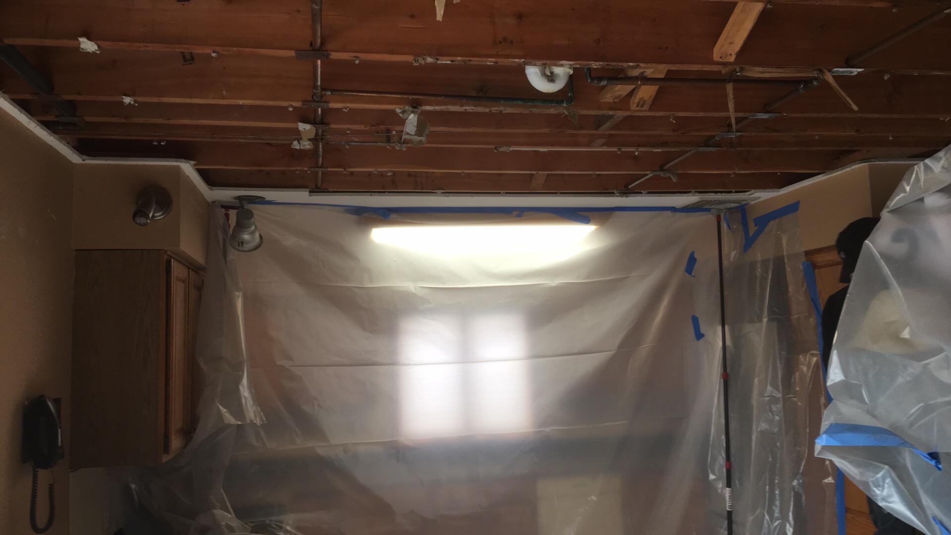 Our IICRC-certified technicians started immediately by setting up high-velocity air movers, commercial dehumidifiers, HEPA air scrubbers and hydroxyls to begin drying their home. They removed, bagged and disposed of affected materials.