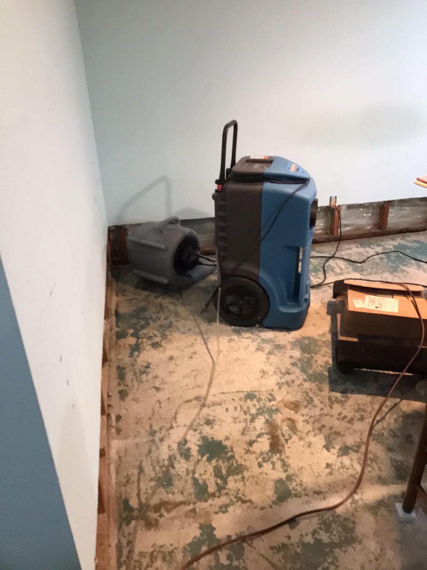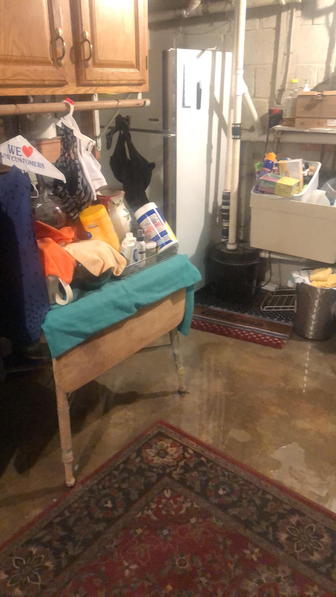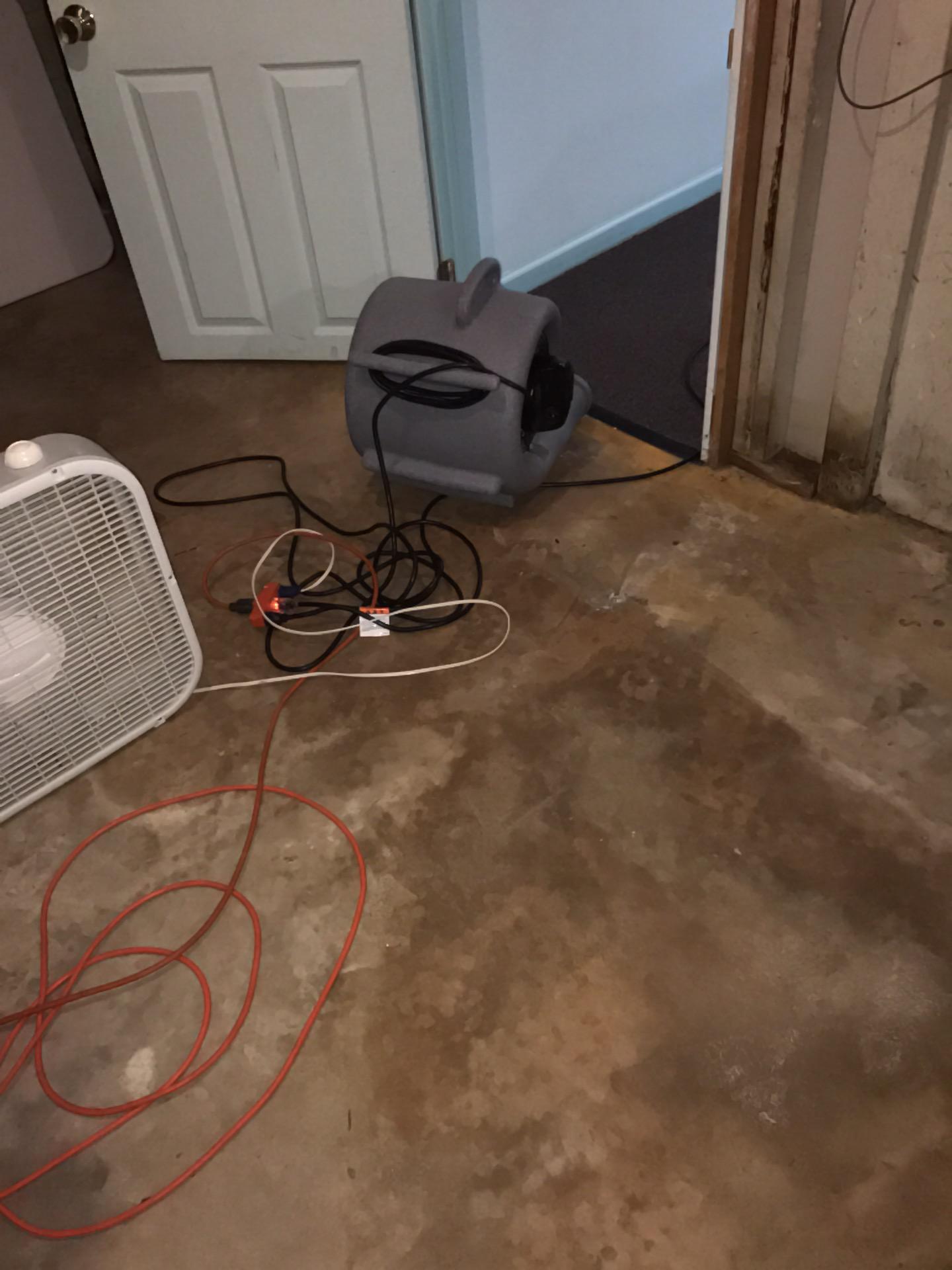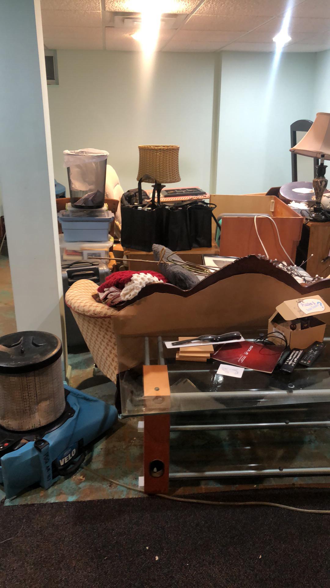 Our IICRC-certified technicians started immediately by setting up high-velocity air movers, commercial dehumidifiers, HEPA air scrubbers and hydroxyls to begin drying their basement. We packed up their unaffected content and moved it to a dry area of their basement. The team immediately began the water extraction process. After all standing water was removed, our team placed blocks underneath the homeowner's storage tubs and undamaged furniture, making sure there were no spots where moisture could hide and cause mold issues later.