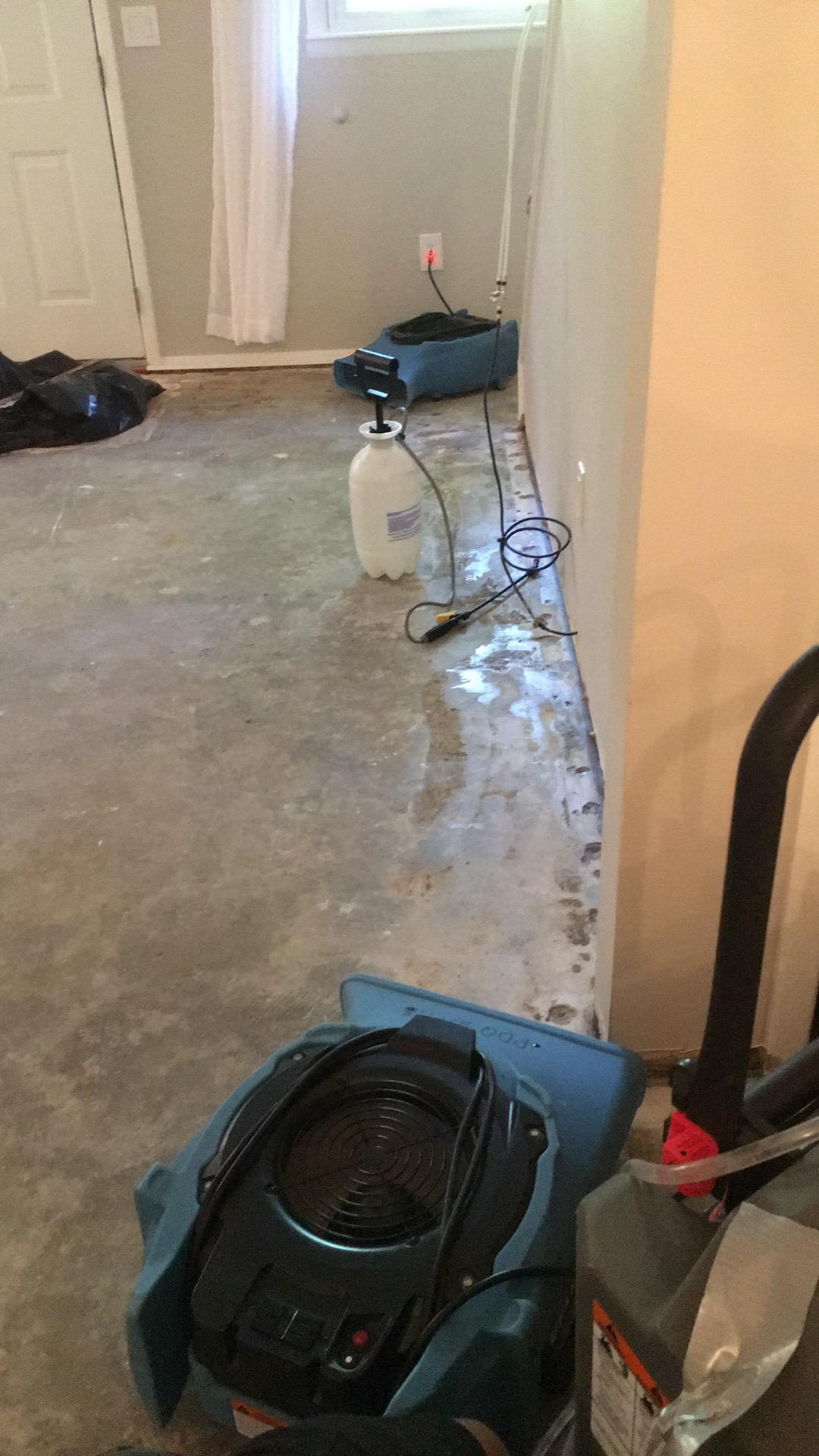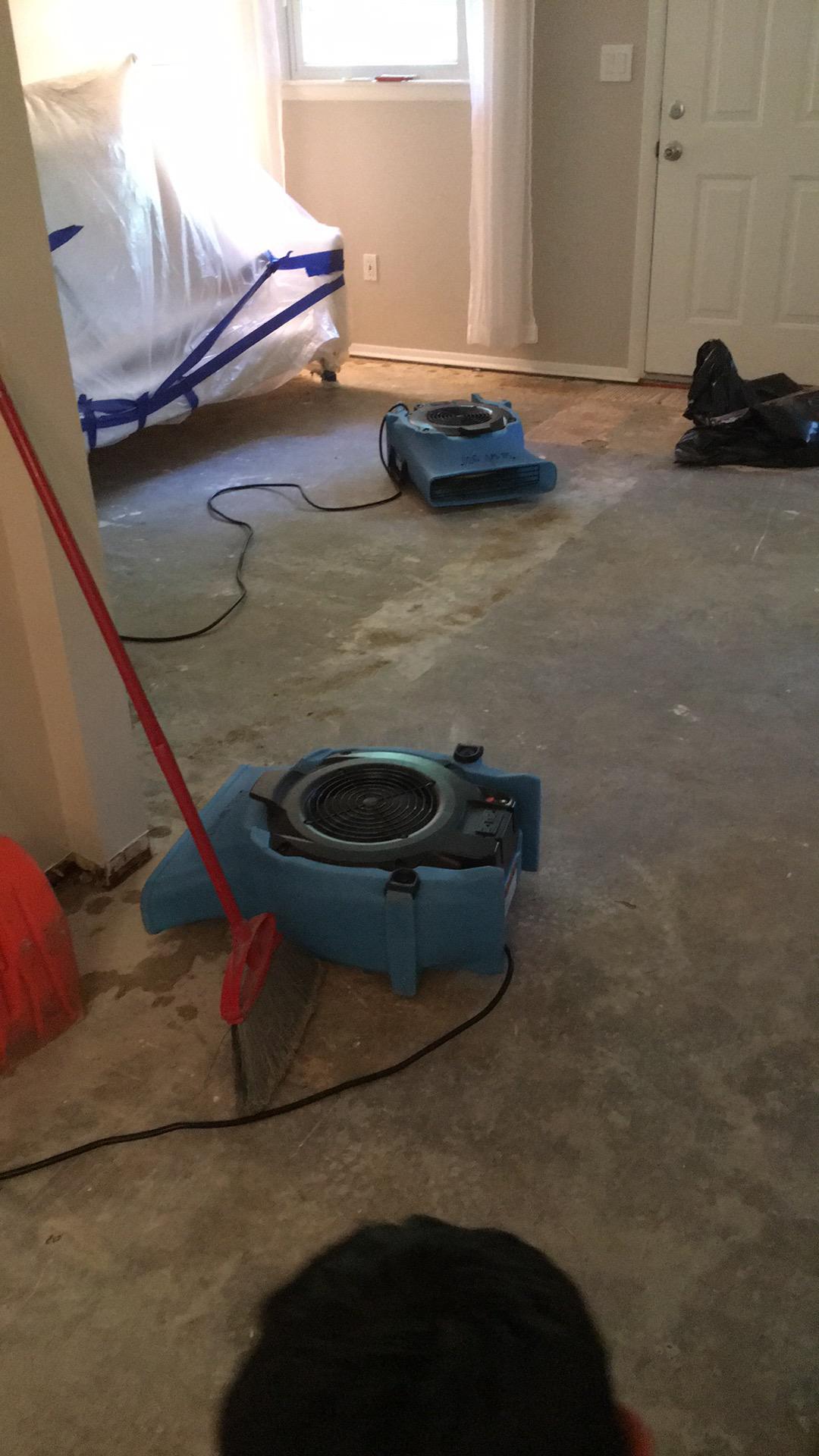 Our Team started immediately. They set up the drying equipment; air movers, dehumidifiers, and air scrubbers. The Team covered and moved the unaffected furniture and content to a dry part of the house. They removed and disposed of the affected materials.