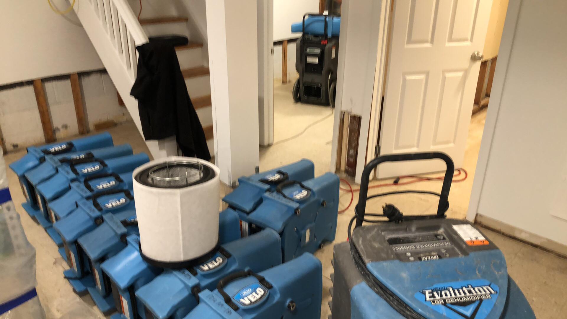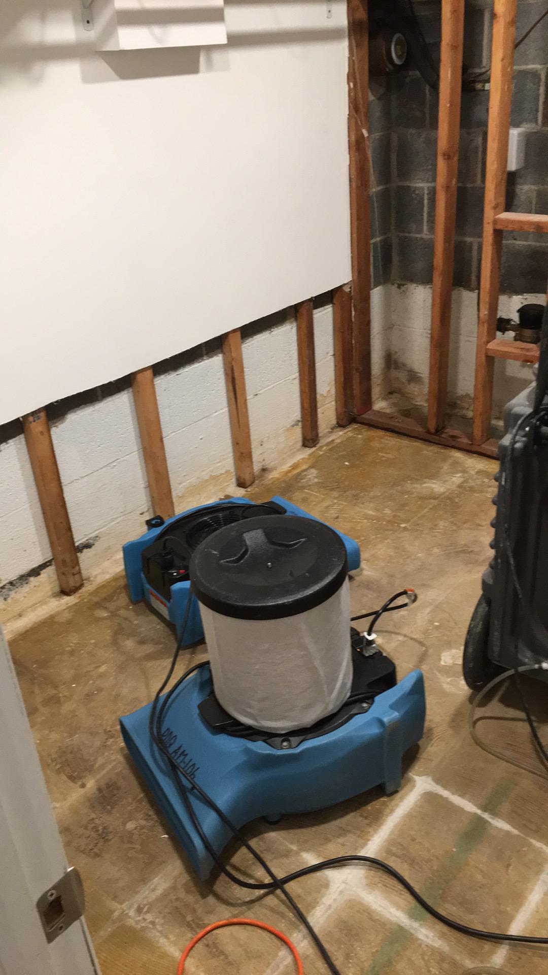 Our IICRC-certified technicians started immediately by setting up high-velocity air movers, commercial dehumidifiers, HEPA air scrubbers and hydroxyls to begin drying their basement. We packed up their unaffected content and moved it to a dry area of their basement. With the Client's permission, we recorded and documented the disposal of non-salvageable items. We removed, bagged and disposed of the affected materials. Antimicrobial solution was applied to all affected areas. We visited their home each day to look after the drying process. It took 3 days to dry their home.