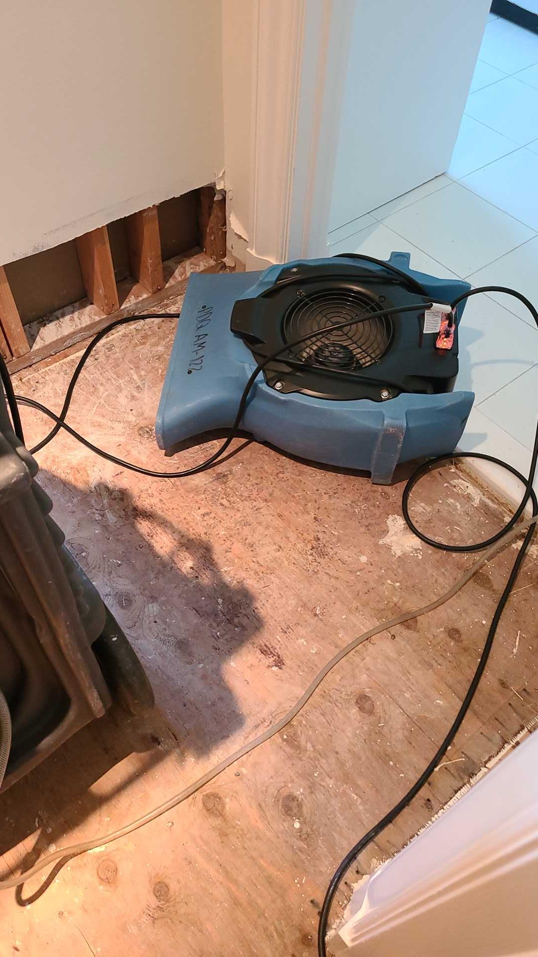 Our IICRC-certified technicians started immediately by setting up high-velocity air movers, commercial dehumidifiers, HEPA air scrubbers and hydroxyls to begin drying their home. PDQ Restoration removed the wet affected materials such as drywall, insulation and flooring. We visited their home on a daily basis to look after the drying process.