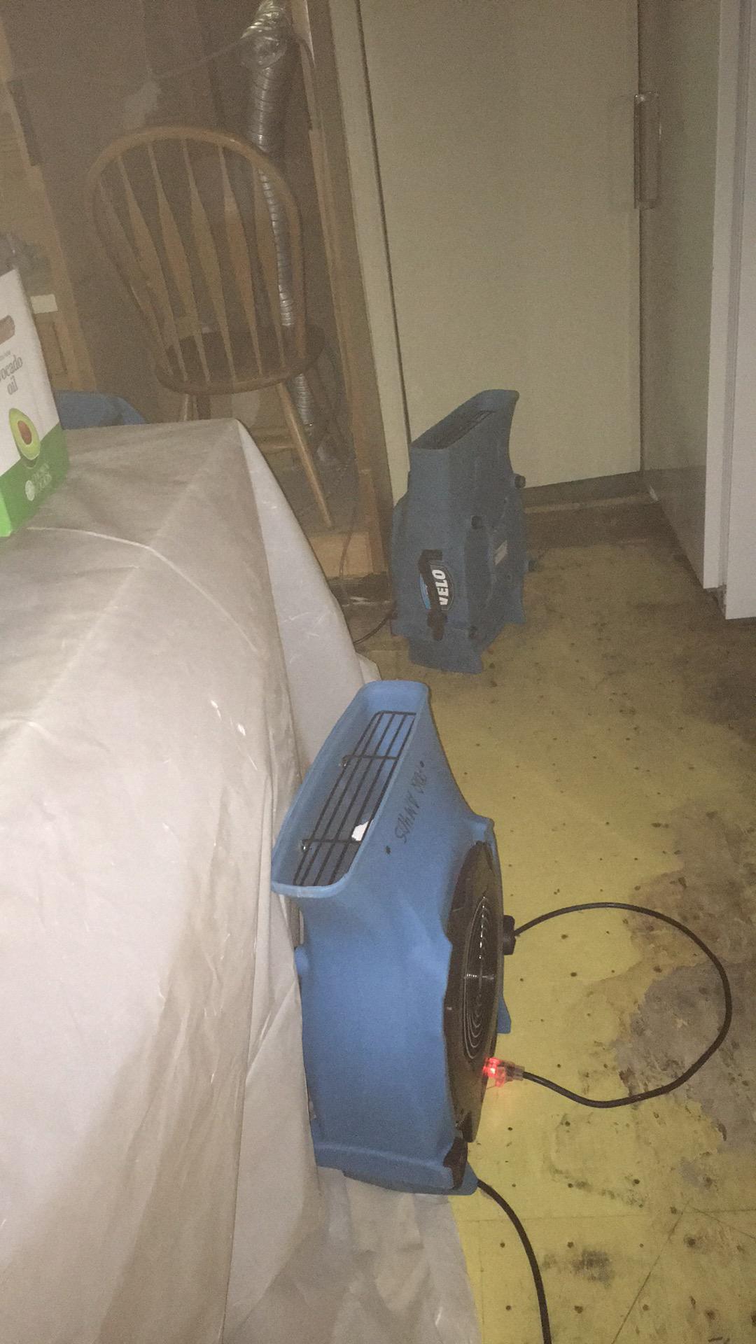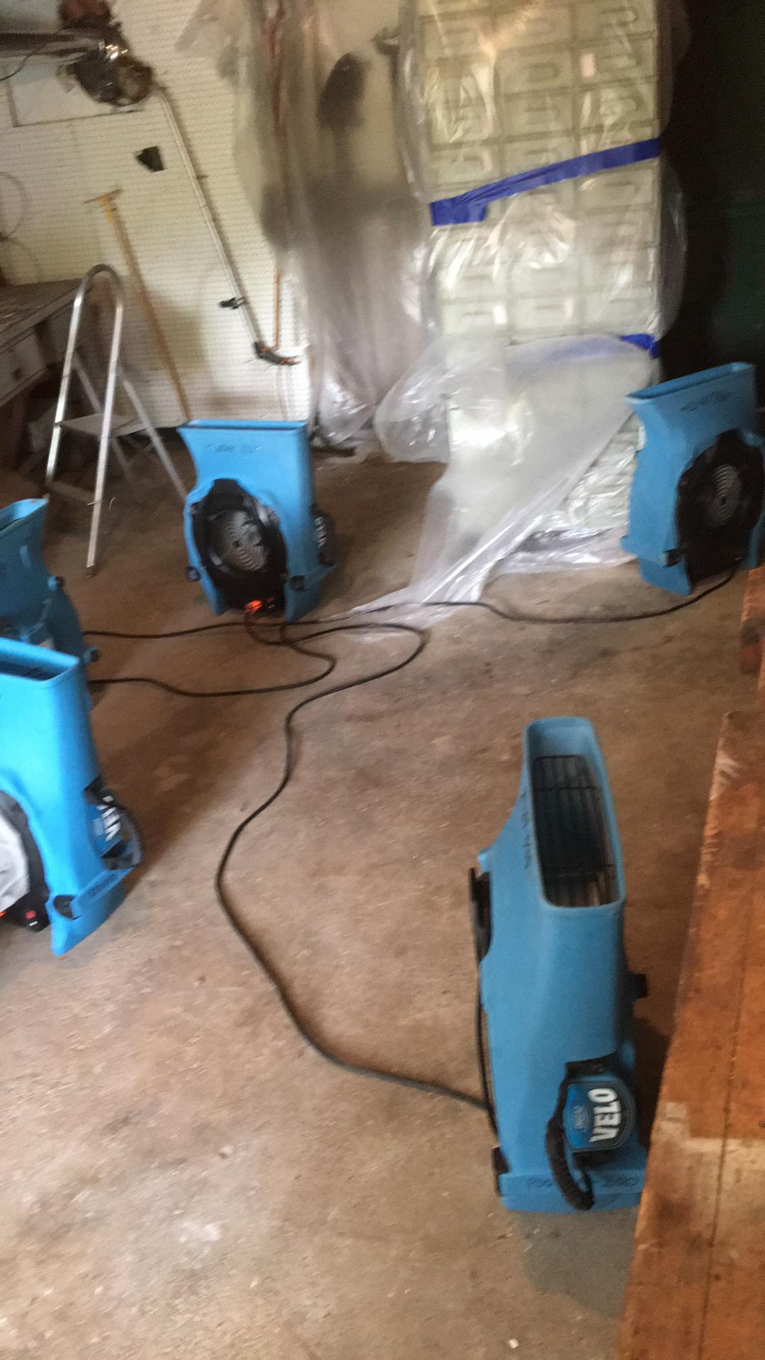 Our Team started immediately by setting up the drying equipment; high-velocity air movers, commercial dehumidifiers, HEPA air scrubbers and hydroxyls to begin drying her home. They packed up her unaffected content and moved it to a POD on her property. With the Client's permission, they recorded and documented the disposal of non-salvageable items. They removed, bagged and disposed of the affected materials.