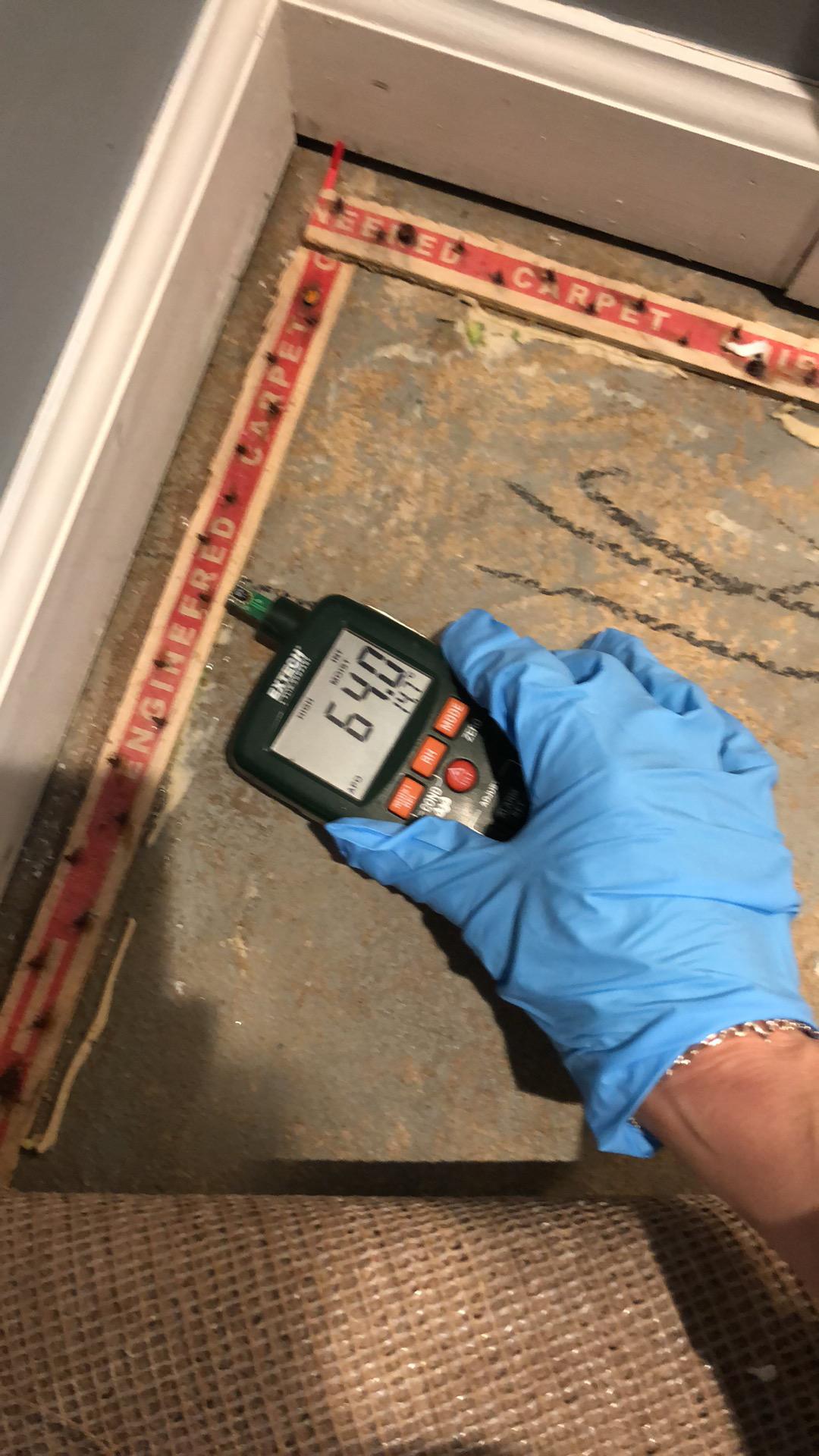 The Client from Maywood New Jersey found us through a Google search. Her condo sustained water damage from a leaking kitchen faucet that affected the bathroom, kitchen and the hallway and basement below. The client was concerned on how long it would take to start the drying process.