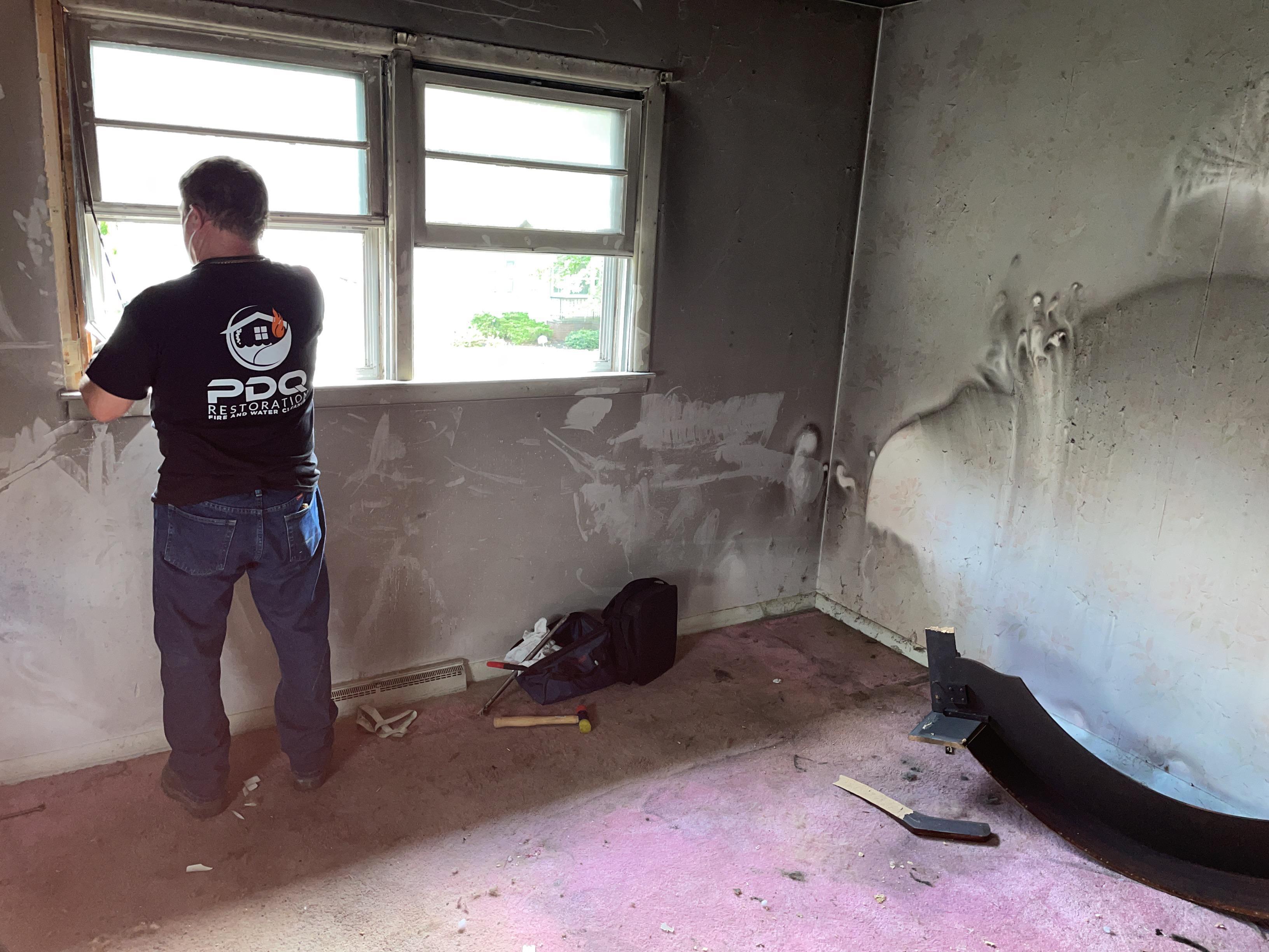 The Client from Randolph, NJ had a portable space heater that caught fire in their bedroom on the first floor. There was extensive damage in the bedroom, as well as smoke and soot that had traveled upstairs.