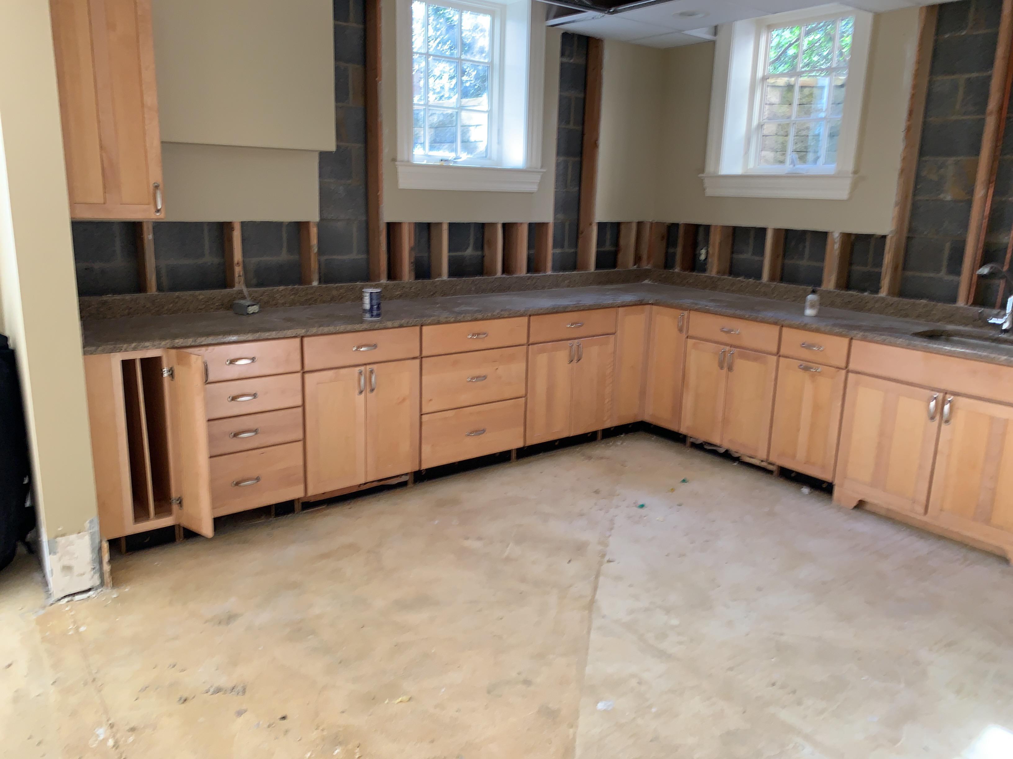 PDQ started by drying the kitchen cabinets by removing the wet insulation from behind the cabinets at the home in Morristown, New Jersey. Thankfully, no cabinets had to be removed because the client called on us in time.