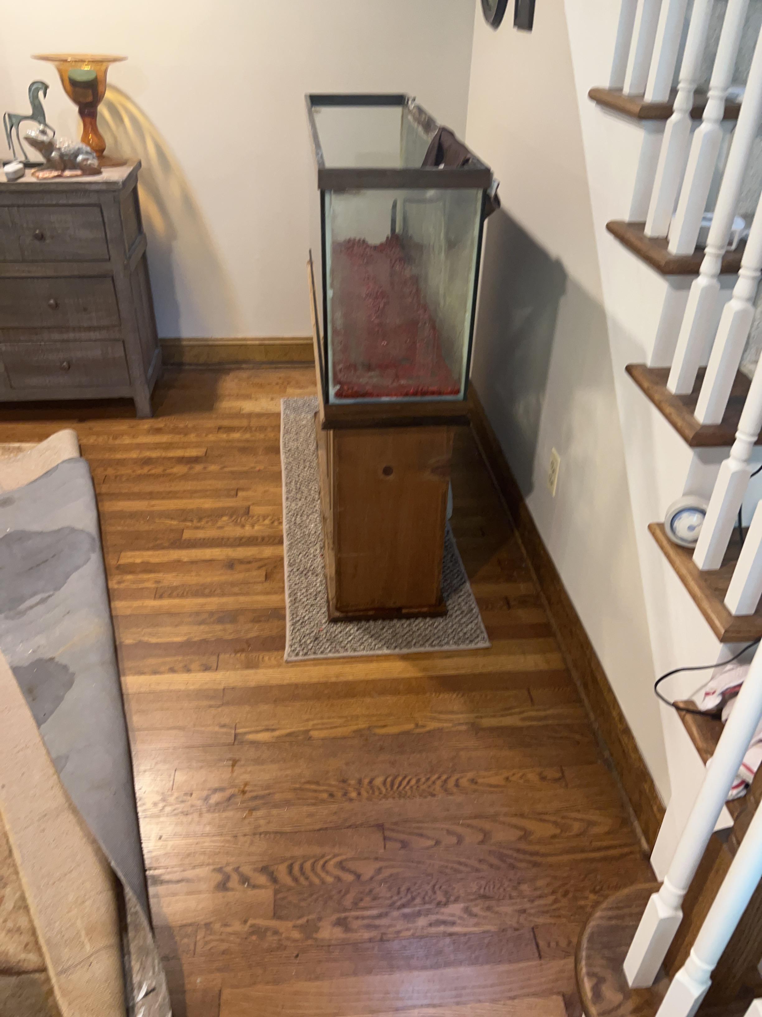 The customer from Annadale, NJ had a 55 gallon fish tank that broke. It affected the hardwood floors, drywall and ran into unfinished basement below.