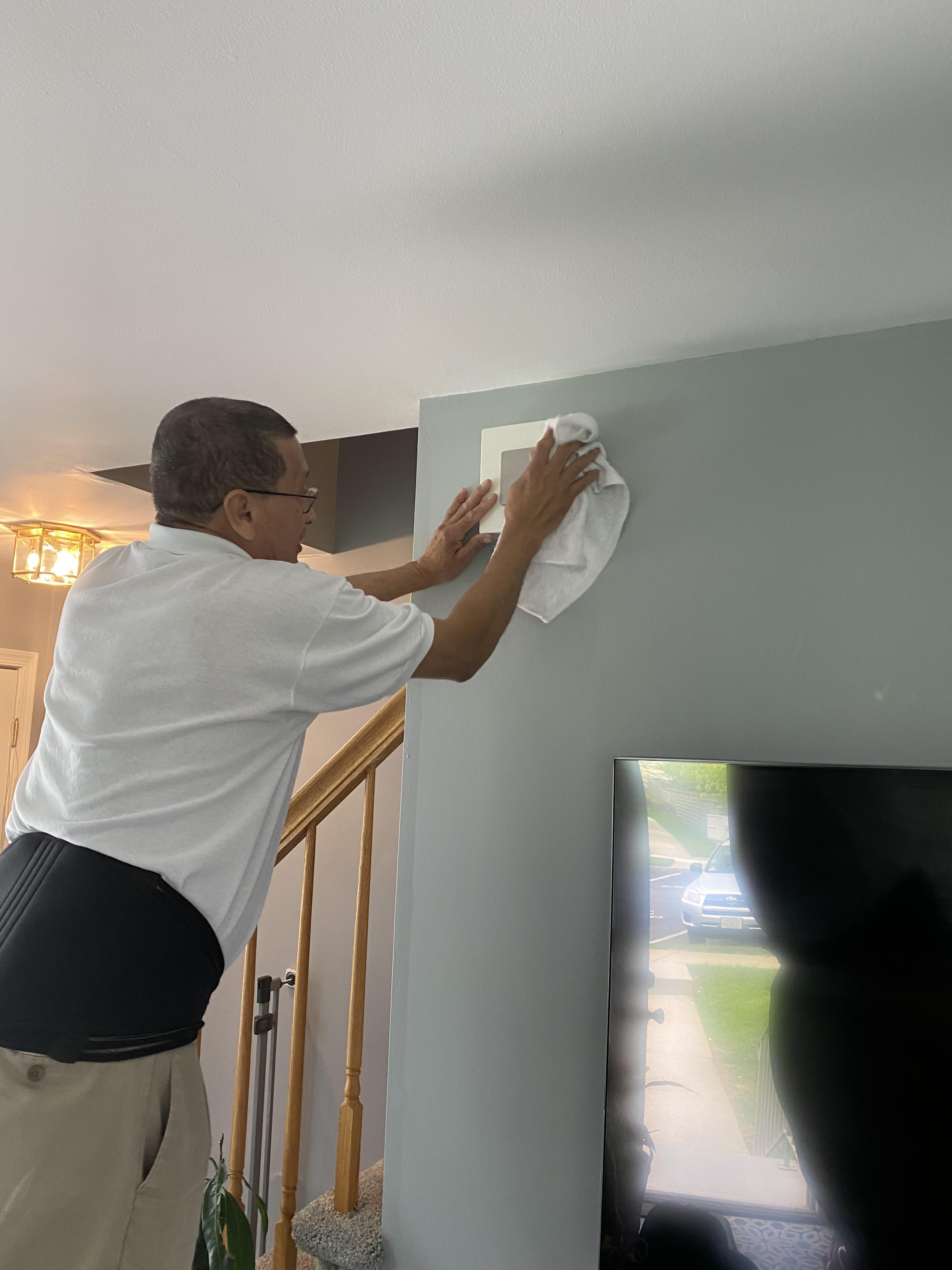When we arrived to the Homeowner's home in Hackettstown, NJ, we walked around and performed sponge tests throughout the home. There were remnants of soot everywhere; the baby's room upstairs, the living room, kitchen and bathroom.