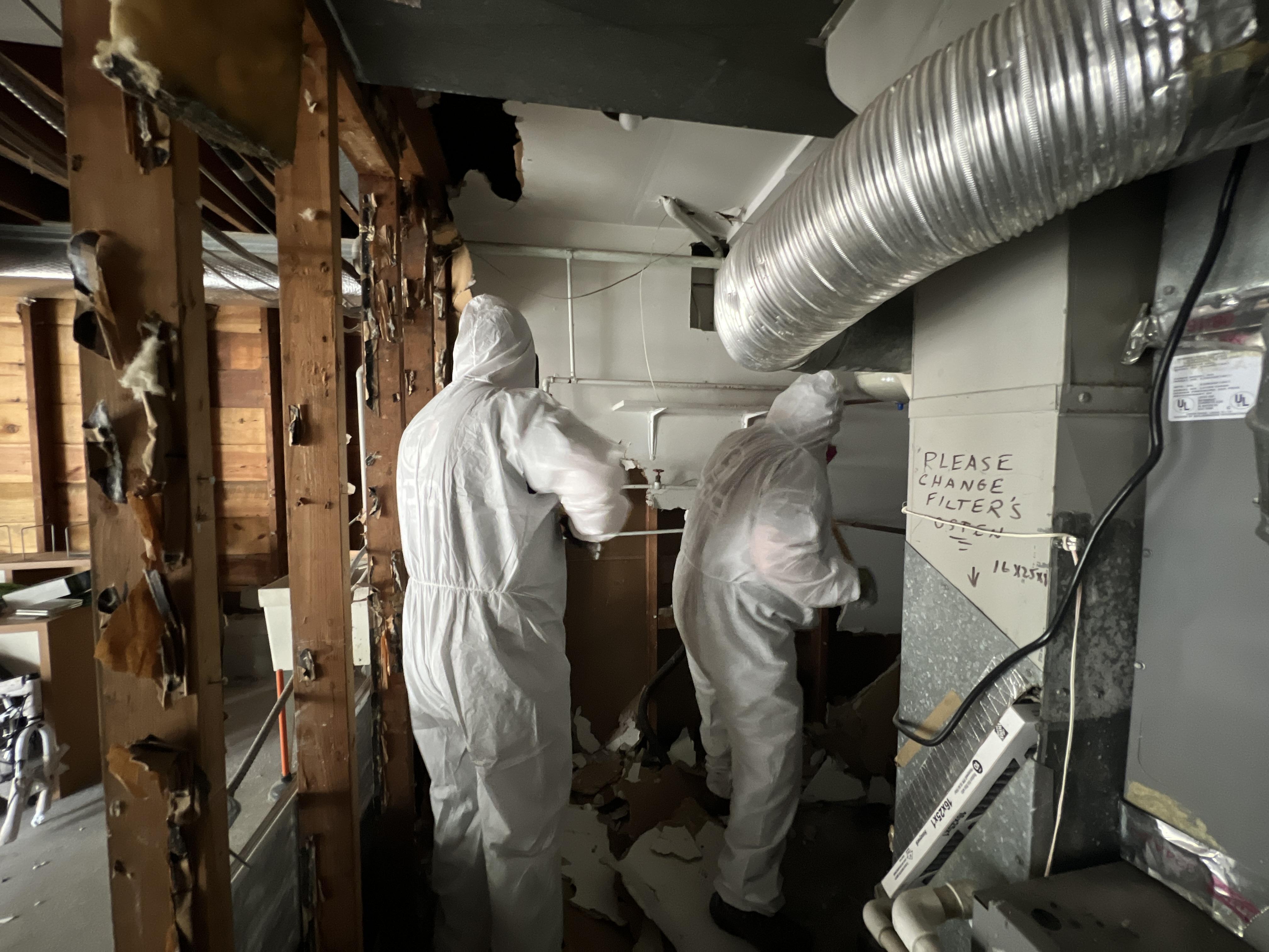 A positive asbestos reading came back from the basement flooring, so the flooring was removed. Soot damage was remediated and equipment stayed on site until there was no odor remaining from the fire.