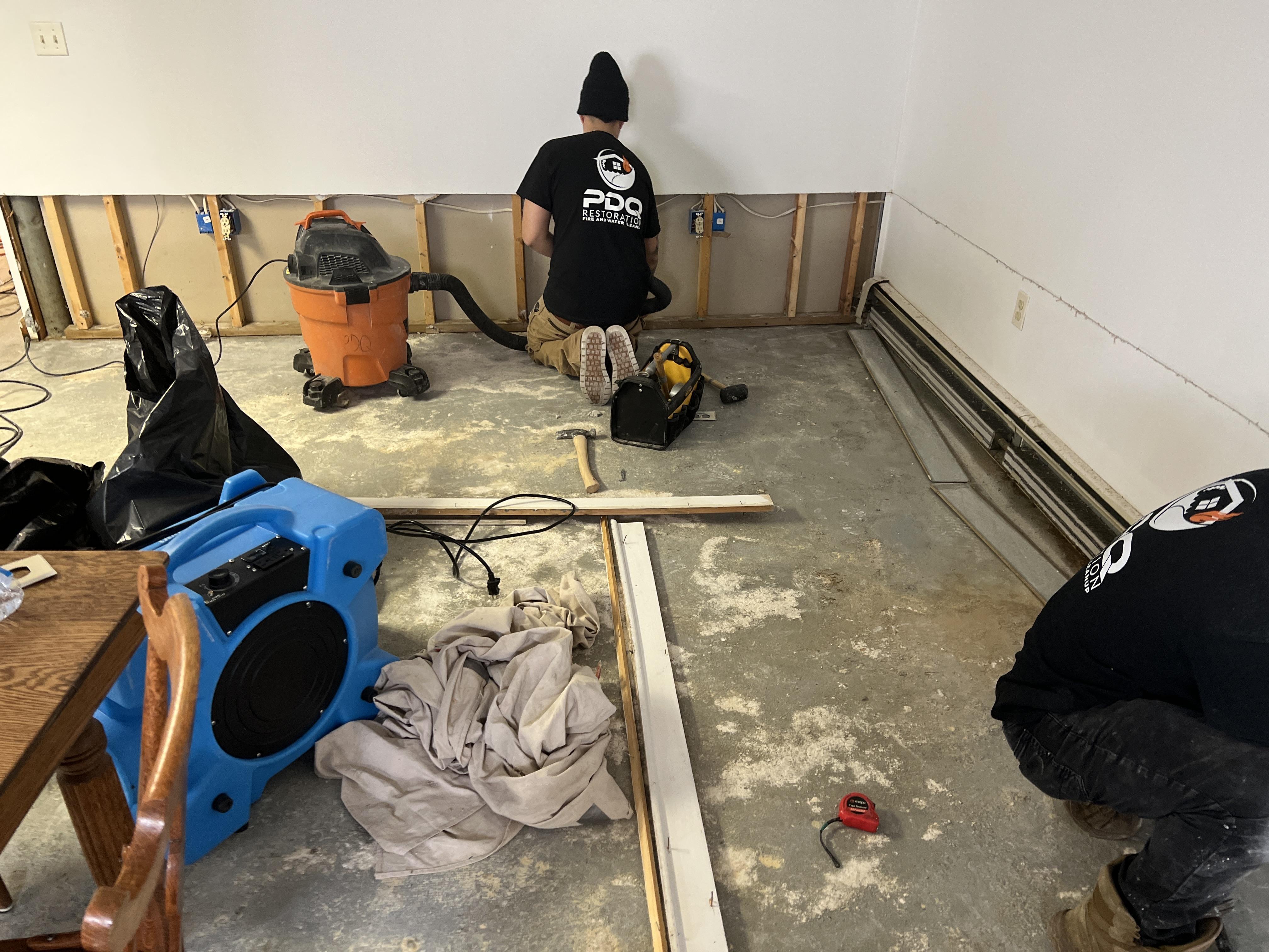 We found a burst in the radiator in one of the rooms near the basement at the home in Chester, New Jersey. A bathroom next to the bathroom was investigated where we found water damage and leaks. Flooring and drywall were repaired. Air scrubbers and de-humidifiers were used throughout the house and affected areas. Removed all water-damaged drywall.