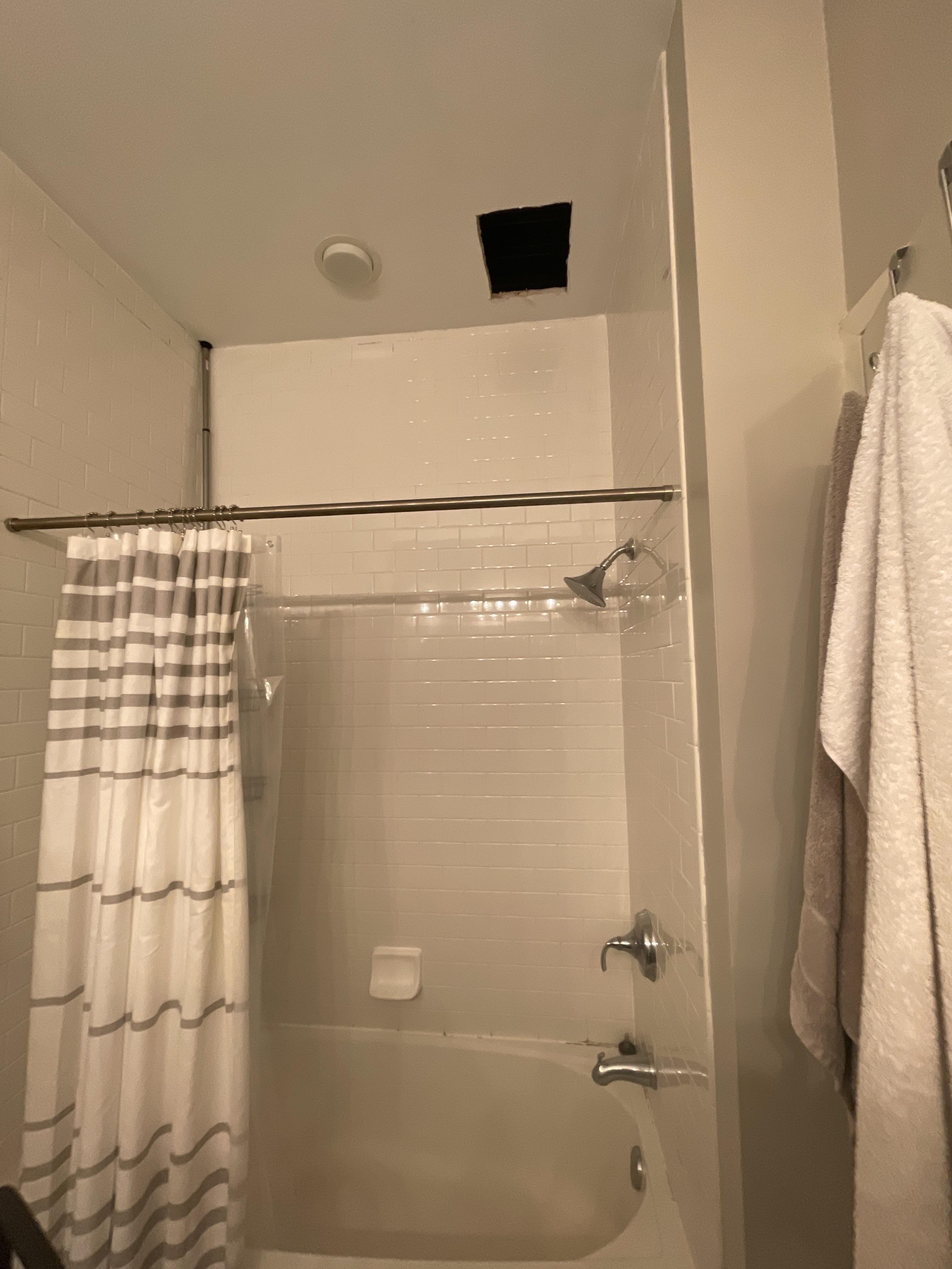 The owner from Andover, NJ of the condominium got a call from the tenant saying that water was coming through the ceiling of the bathroom. The origin of the water damage came from a burst pipe from the unit above. This caused water damage to the sheetrock and hardwood floors near the bathroom.