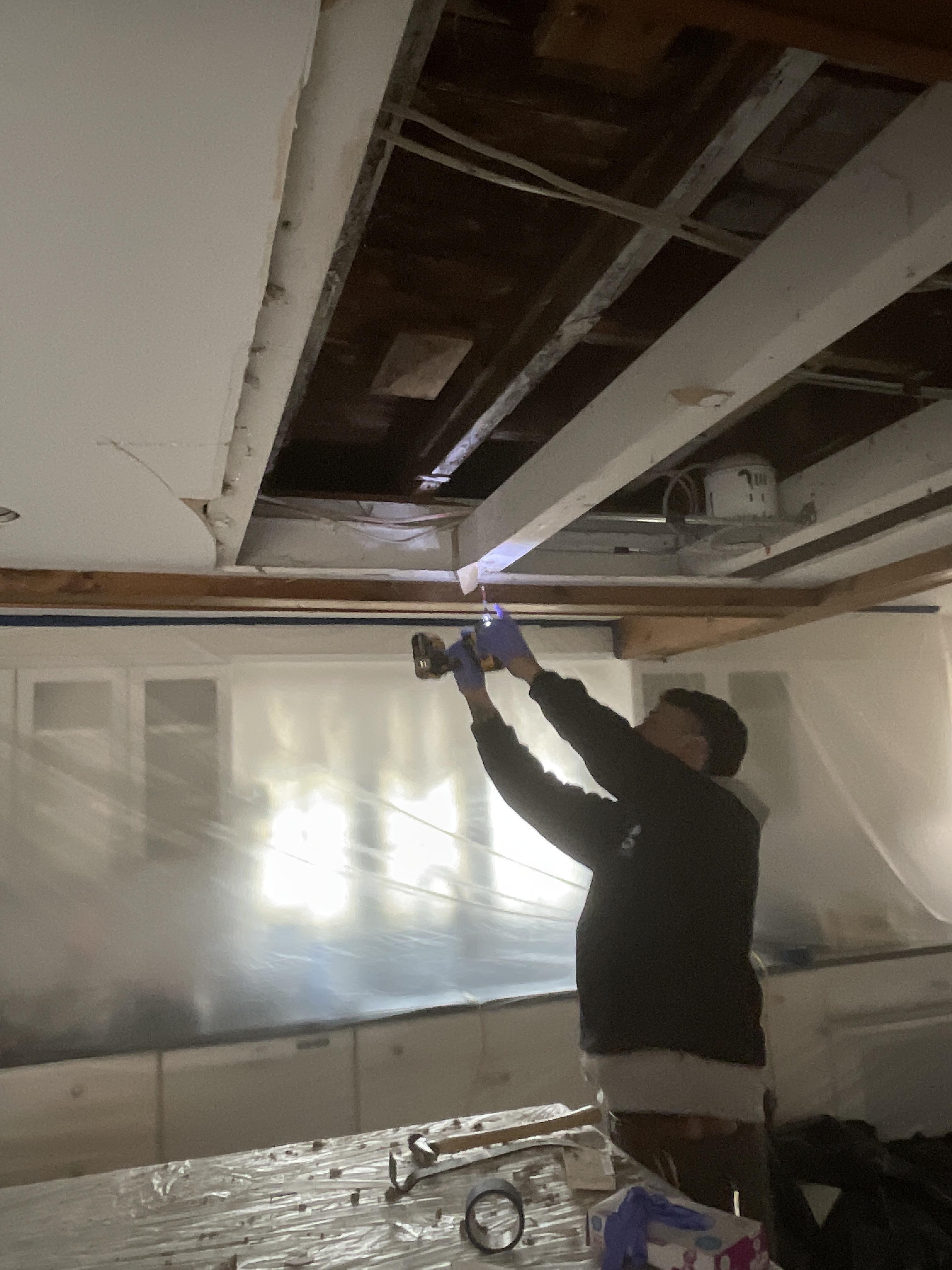 Water was leaking from the ceiling in the kitchen at the home in Chester, NJ. A radiator in the home office had burst. They were concerned that another pipe had exploded in the kitchen. The water damage affected the kitchen including the kitchen floor and ceiling, and the home office.