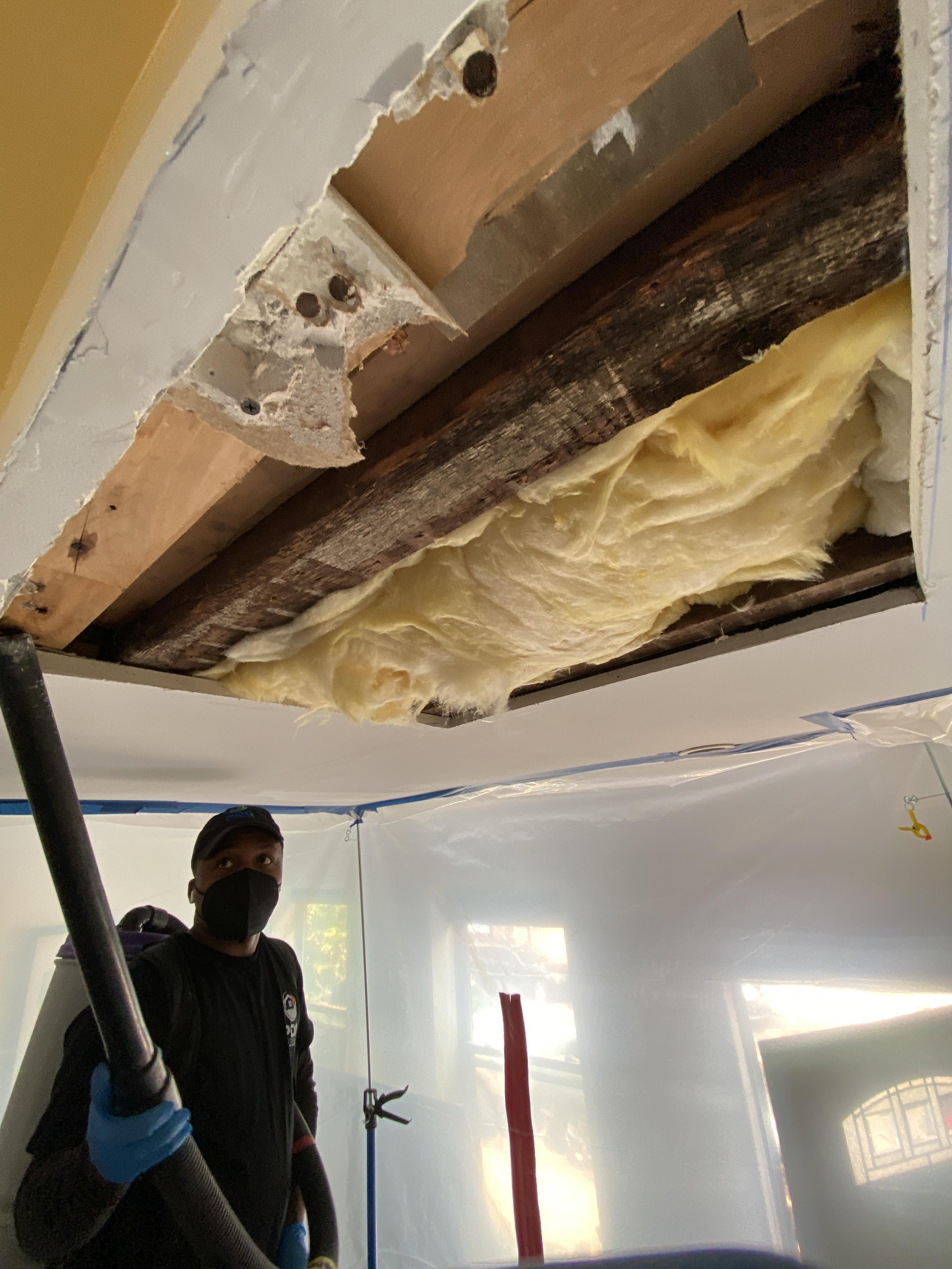 The homeowner from East Hanover, NJ noticed visible mold stains on the ceiling by the 1st-floor staircase to the 2nd floor. Cracks in the wall were also evident. They were concerned about unhealthy air in the house and damage to the walls and ceiling.