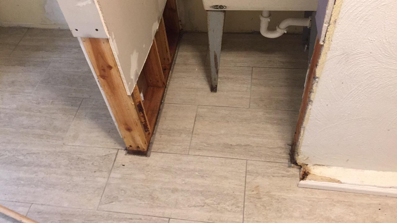 The upstairs toilet in the master bedroom had overflowed. Sewage filled up the bathroom and surrounding hallways. A lot of the baseboards were wet with sewage.