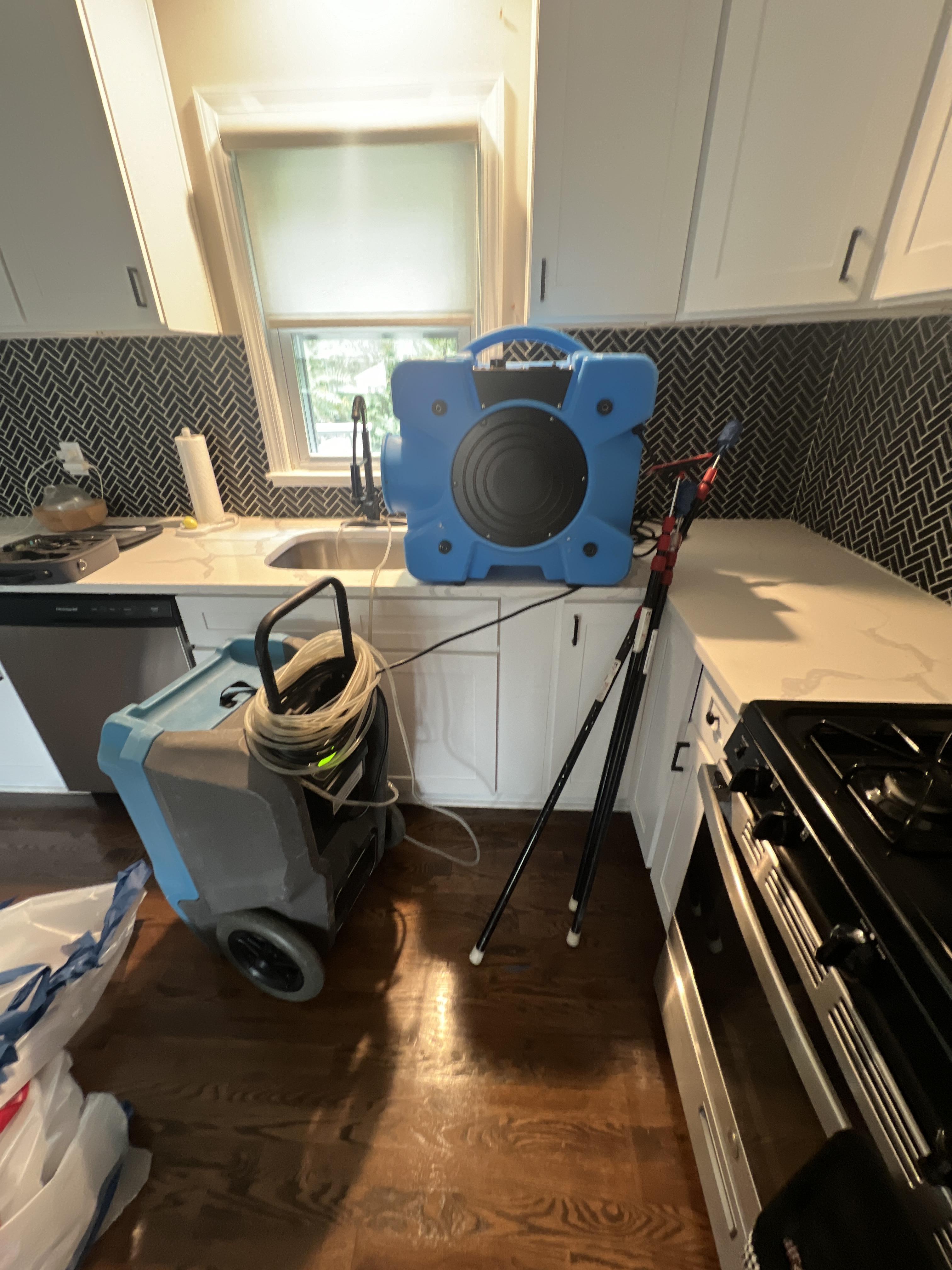 PDQ came in with a professional team and began the dry-out process. The first order of business was to extract any and all standing water. A drying chamber was set up in the kitchen along with fans and dehumidifiers.