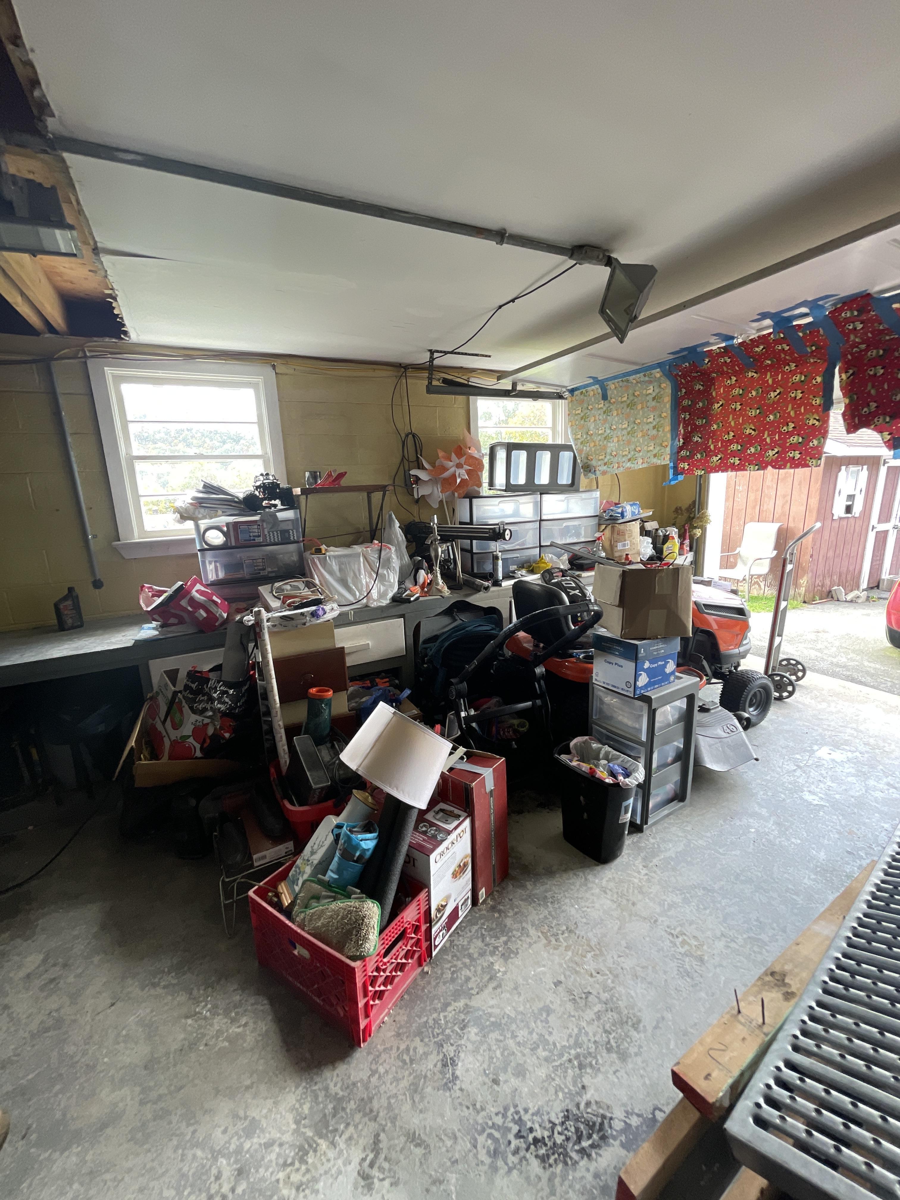 PDQ extracted all of the water in the garage. A flood cut was performed for the affected walls. The drying chamber was set up using several fans and dehumidifiers.