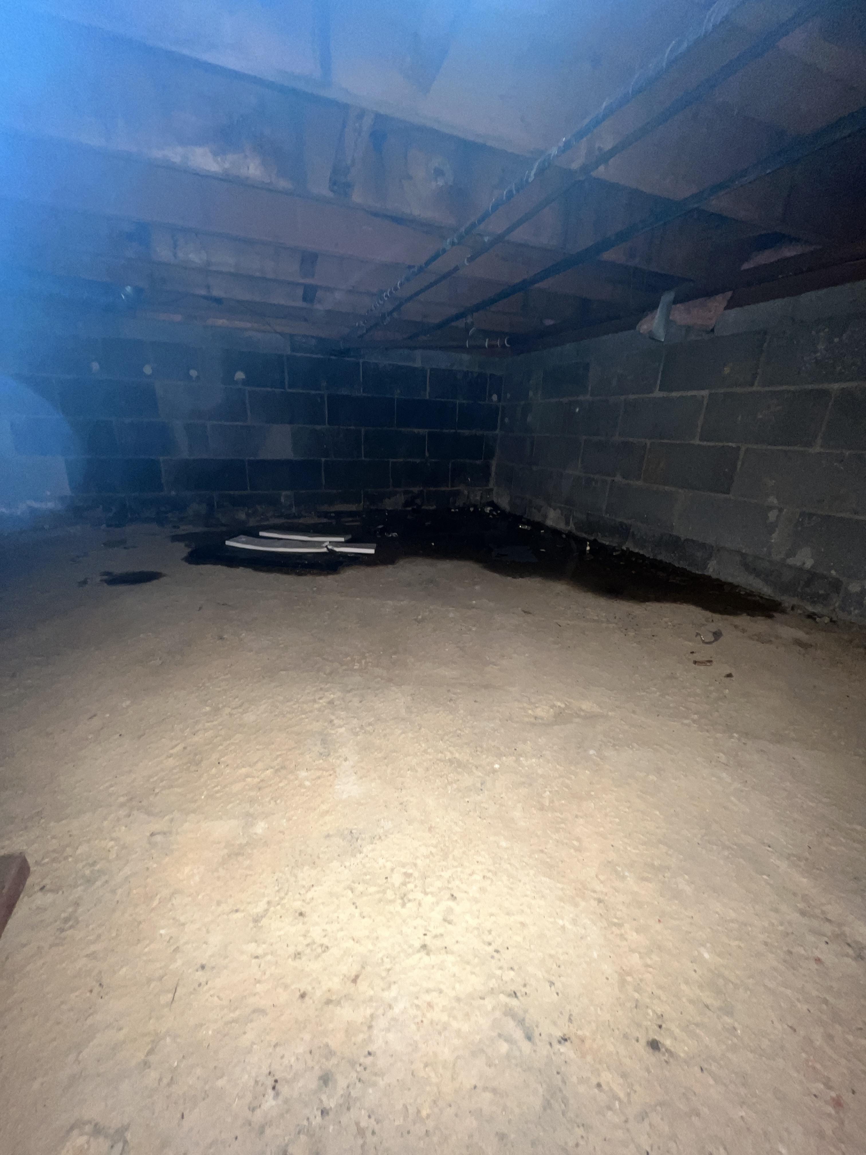 Olivia had a water loss in her basement. This was due to a leaky pipe in the ceiling. Water had accumulated in the corner of the basement and started to spread to other parts of the basement.