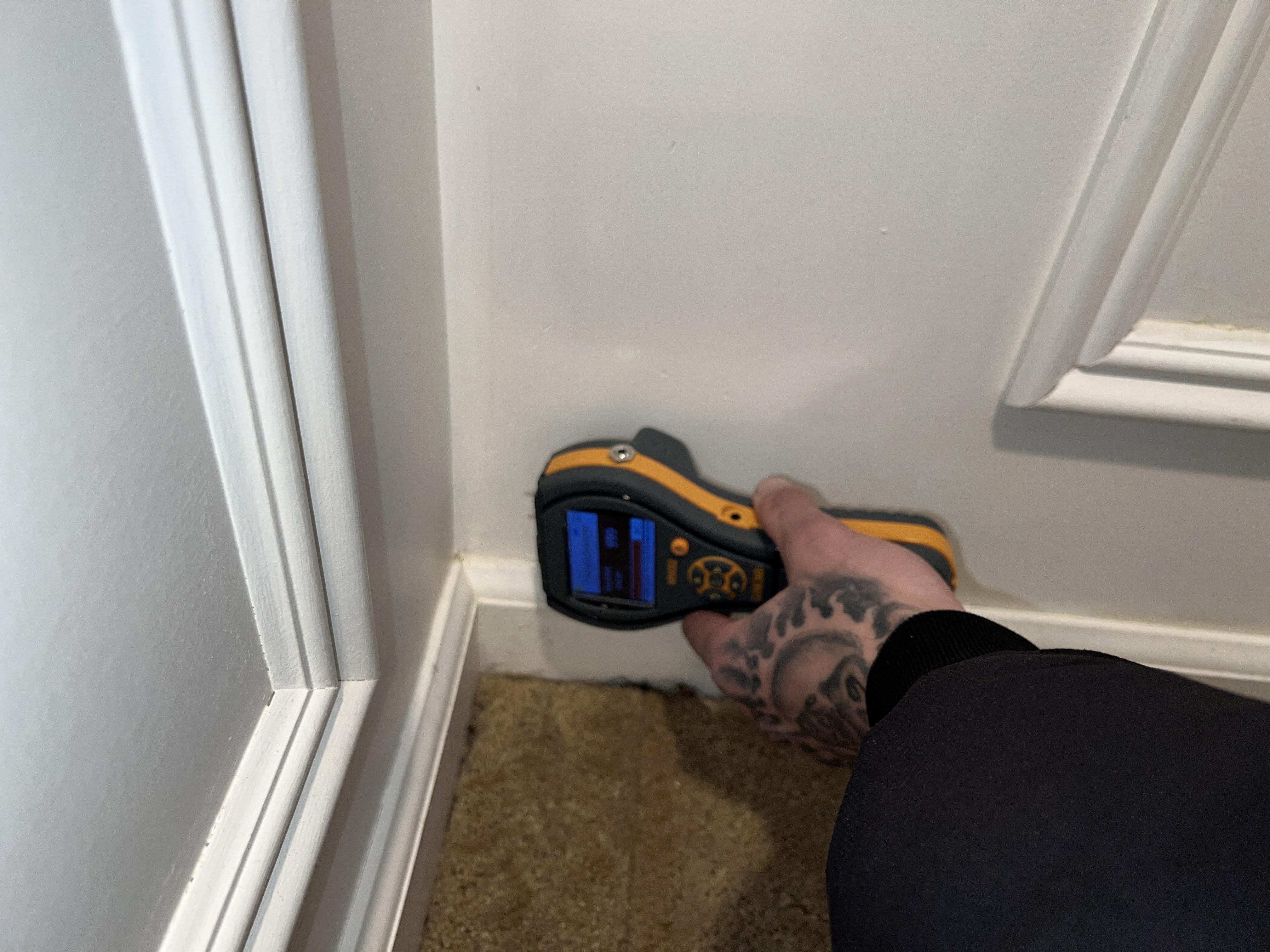 Emma experienced a water loss in her finished basement. A pipe that was clogged has caused a water leak that left her carpet soaked along with some of the cabinets and walls.