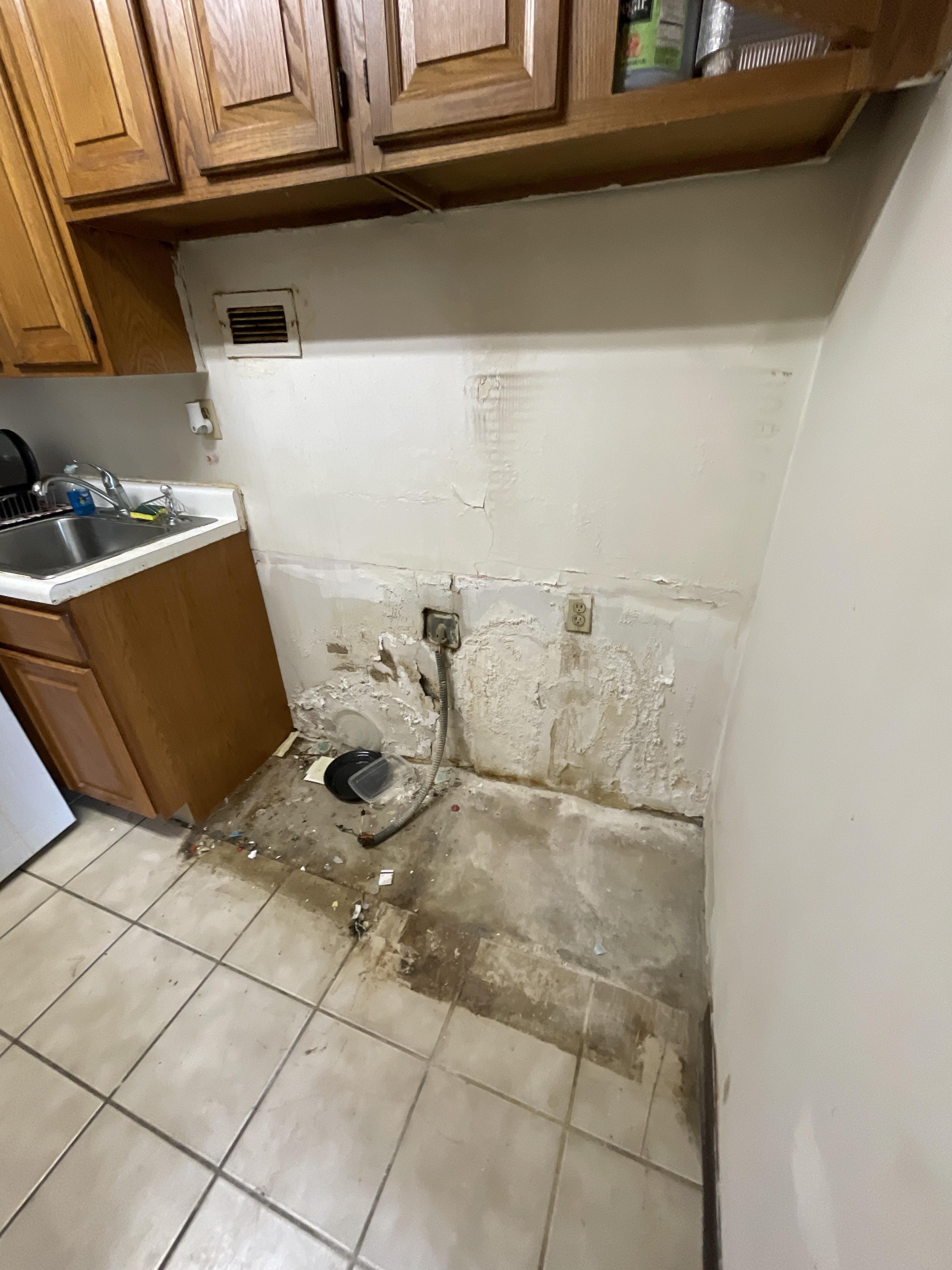 PDQ came in and documented all areas of mold. The stove was carefully removed and the area of the wall with the mold on it was cut out and removed. Antimicrobial was sprayed on surrounding surfaces. All debris and dust was then HEPA vacuumed up after.
