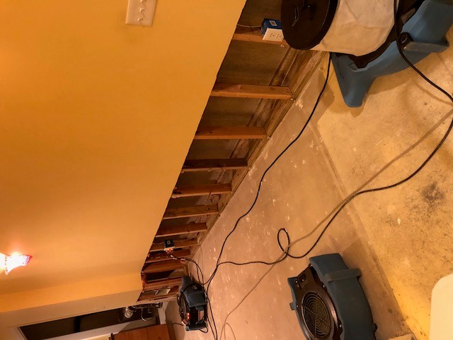 When PDQ arrived at John's house in Morris Plains the technicians first stabilized the basement by removing as much water as possible from the carpets and the unfinished portion of the basement. Afterwards fans and dehumidifiers were placed in order to reduce the humidity and begin the drying process.
