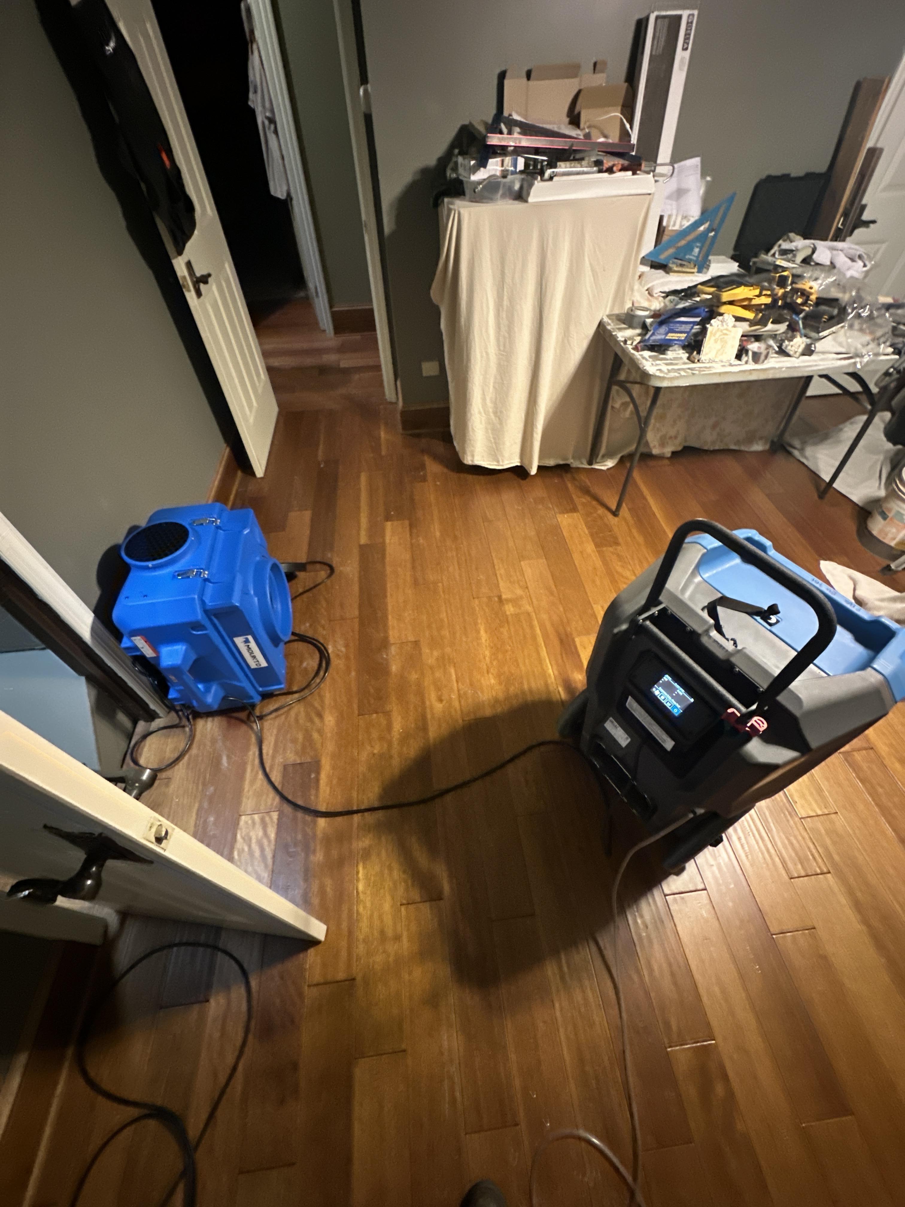 Upon arriving at Arthur’s home in Bernardsville, PDQ Restoration's technicians quickly assessed the extent of the water damage. The first step was to call a professional plumber to repair the broken pipe and stop the leak. Once the plumbing issue was resolved, the team used Injectidry floor mat drying systems to target the water-soaked hardwood floors, providing a focused drying approach to minimize warping and damage. High-capacity fans and dehumidifiers were also placed strategically throughout the affected bedrooms to reduce humidity levels and accelerate the drying process. This comprehensive response was essential to restore Arthur’s hardwood floors, prevent further damage, and ensure a dry and safe environment in his home.