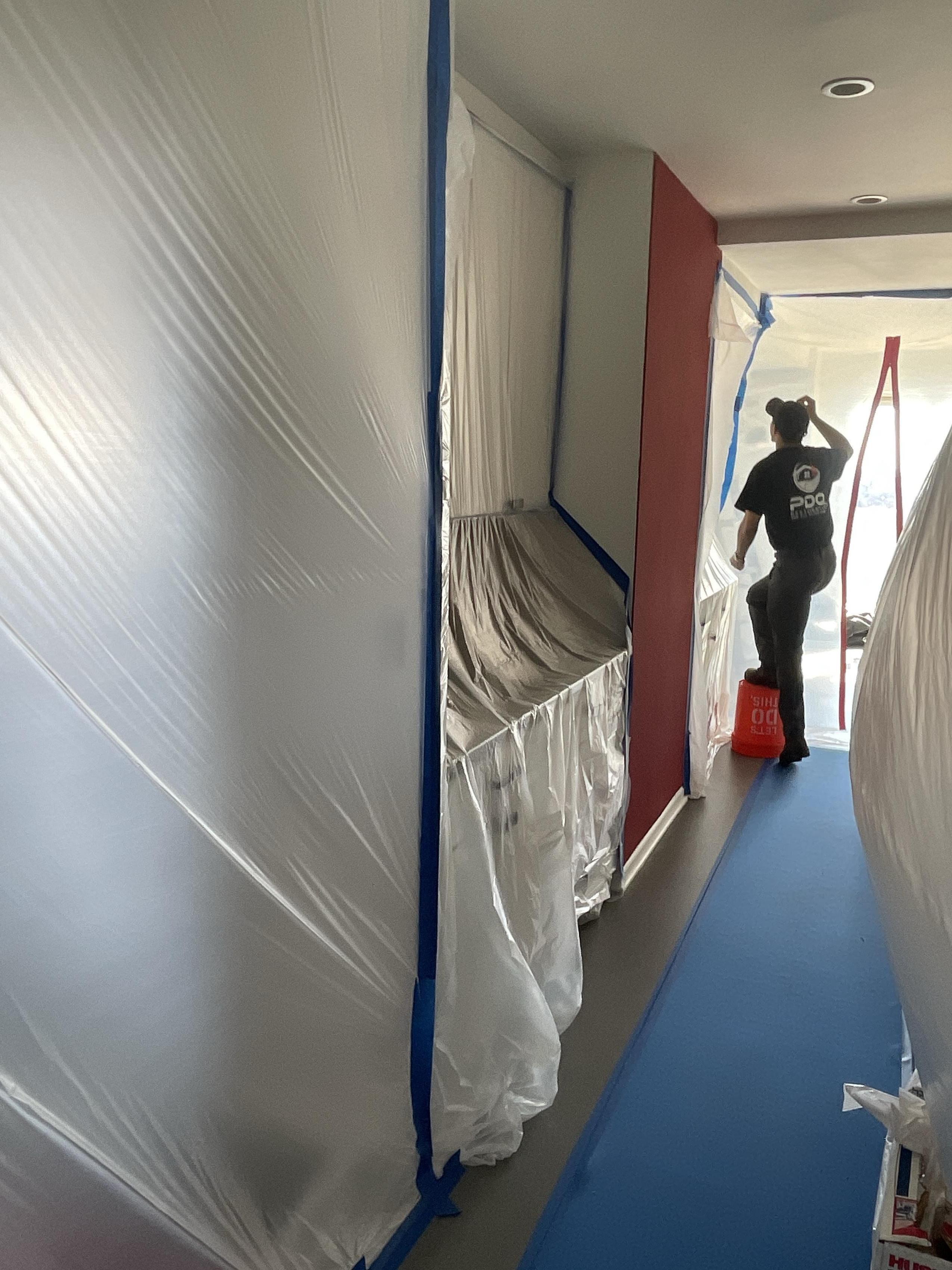 Upon arrival, PDQ Restoration assessed the damage, identifying the sections of the ceiling that had been compromised by the leaking water. Immediate action was taken to contain the situation by extracting any standing water and opening the affected ceiling areas. Industrial fans and dehumidifiers were placed to thoroughly dry out the space and prevent any further water damage or the potential for mold growth. Sections of the ceiling that could not be saved were removed and replaced.