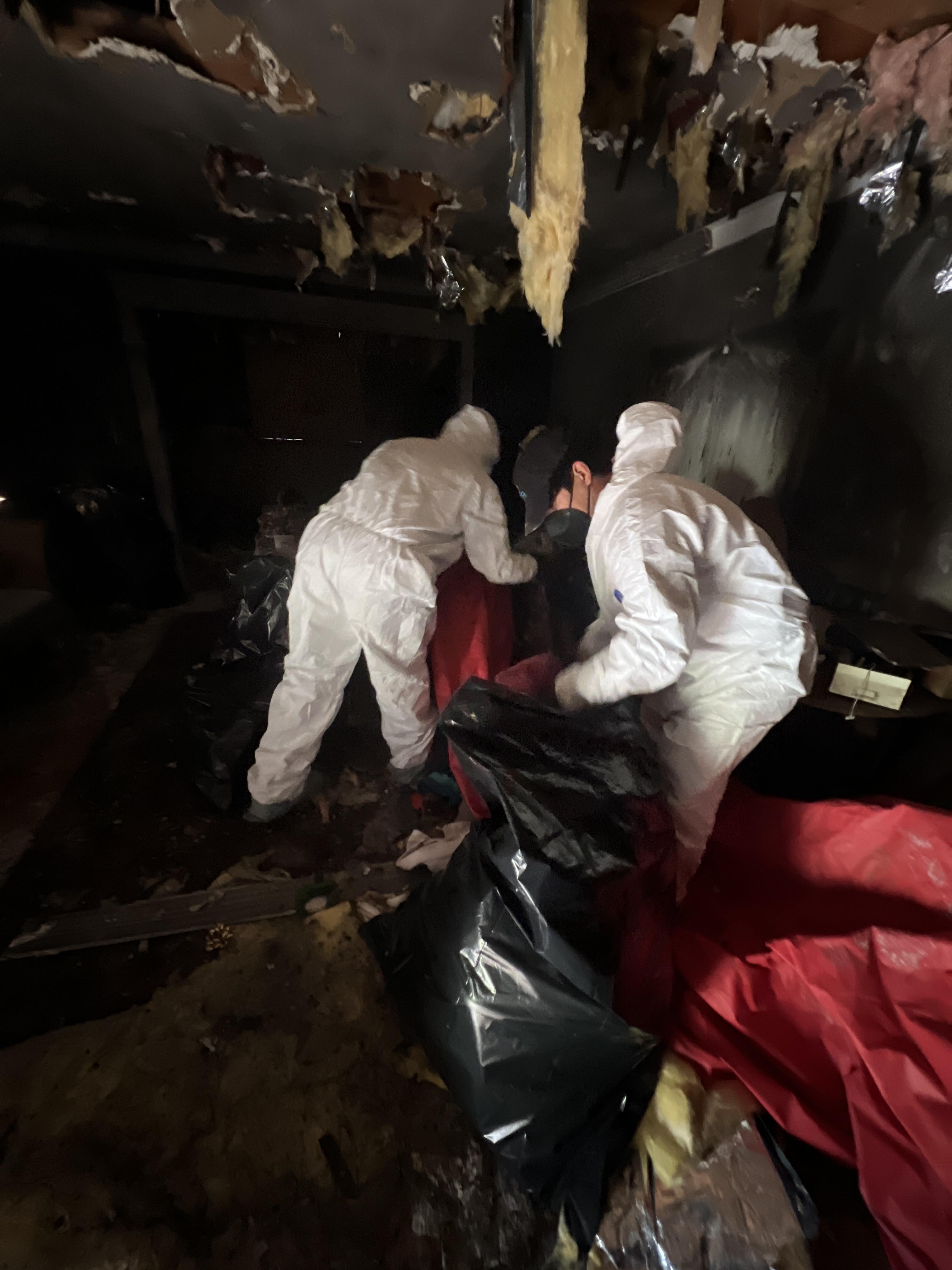 Upon arrival, PDQ Restoration's team immediately assessed the damage, focusing on stabilizing the structure and ensuring safety. The basement and first floor were severely impacted, with both fire and water causing destruction. Smoke and soot had spread throughout the home, requiring deep cleaning and deodorization. PDQ set up industrial-strength fans, dehumidifiers, and air scrubbers to remove moisture and smoke particles from the air. Damaged materials, including flooring, sheetrock, and insulation, were removed as part of the cleanup process.