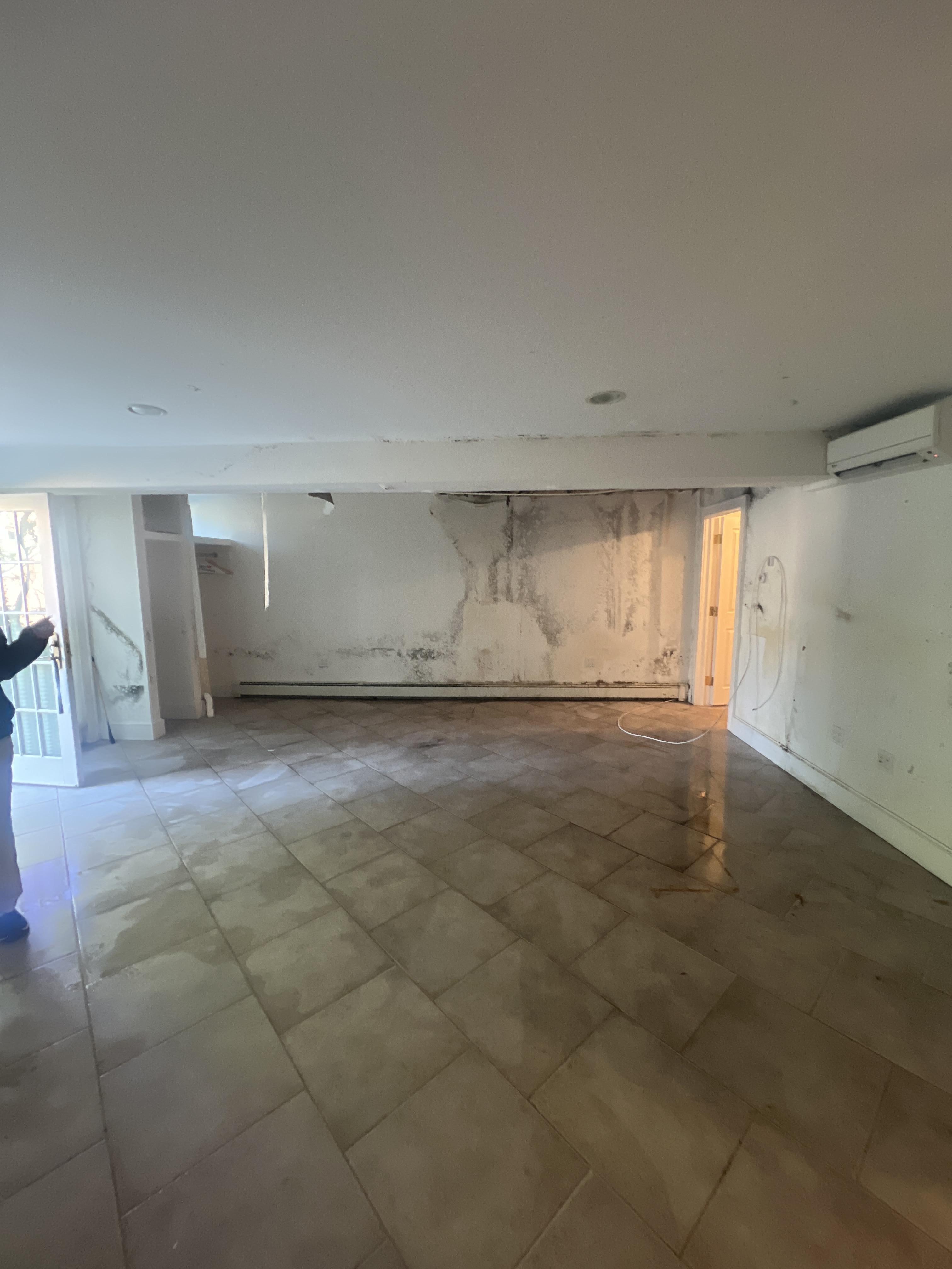 Roger’s home in Chester, NJ, sustained significant water damage after a flood in the upstairs bathroom. The flood caused water to seep through the bathroom floor, soaking the ceiling and walls of the room below. The severity of the water damage required a complete demolition of the affected areas to prevent further structural damage and potential mold growth.