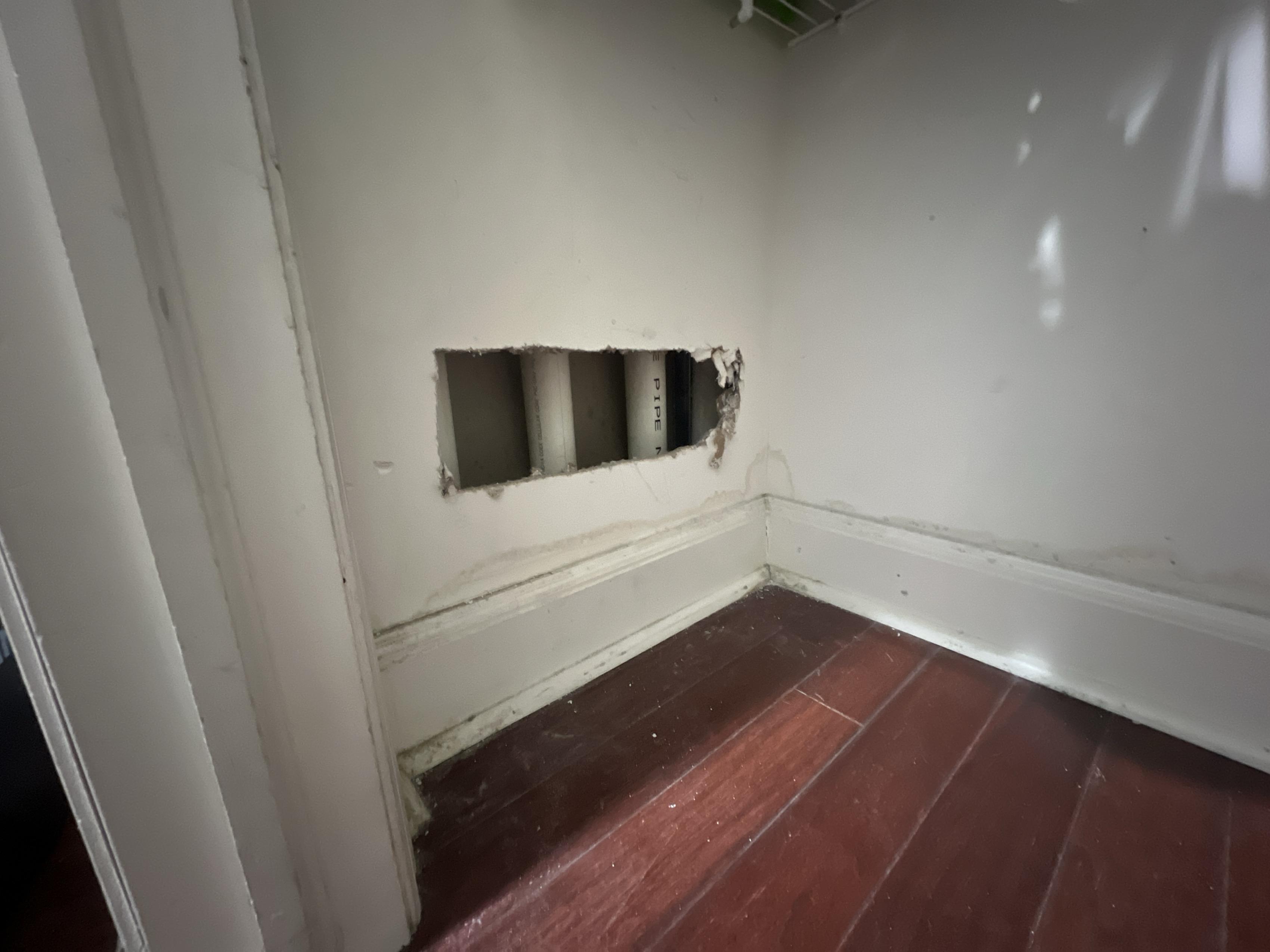Upon arrival, PDQ Restoration thoroughly inspected the affected area to locate the source of the leak and assess the damage. The team carefully opened the wall to repair the broken pipe, stopping any further water from seeping through. Next, they set up industrial fans and dehumidifiers to dry both the wall cavity and the soaked wood floor.