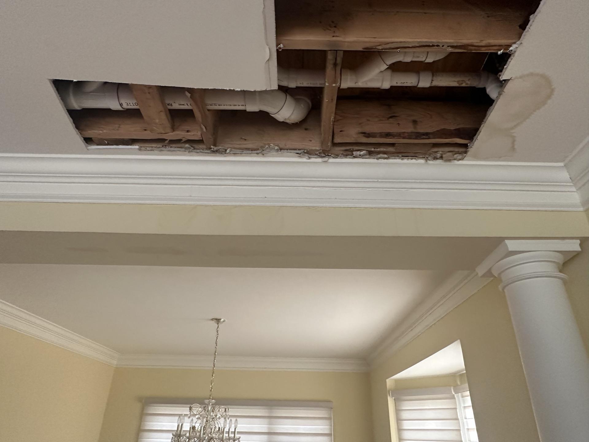 Marcus L. reached out to PDQ Restoration after discovering a persistent leak from a waste pipe beneath the second-floor bathroom of his Dover, NJ home. The leak had gone unnoticed for some time, slowly dripping into the ceiling and wall cavity below. Marcus noticed discoloration and a damp odor in the first-floor hallway, prompting him to investigate. Once he saw signs of moisture damage and realized the issue involved sewage water, he contacted PDQ for immediate help.