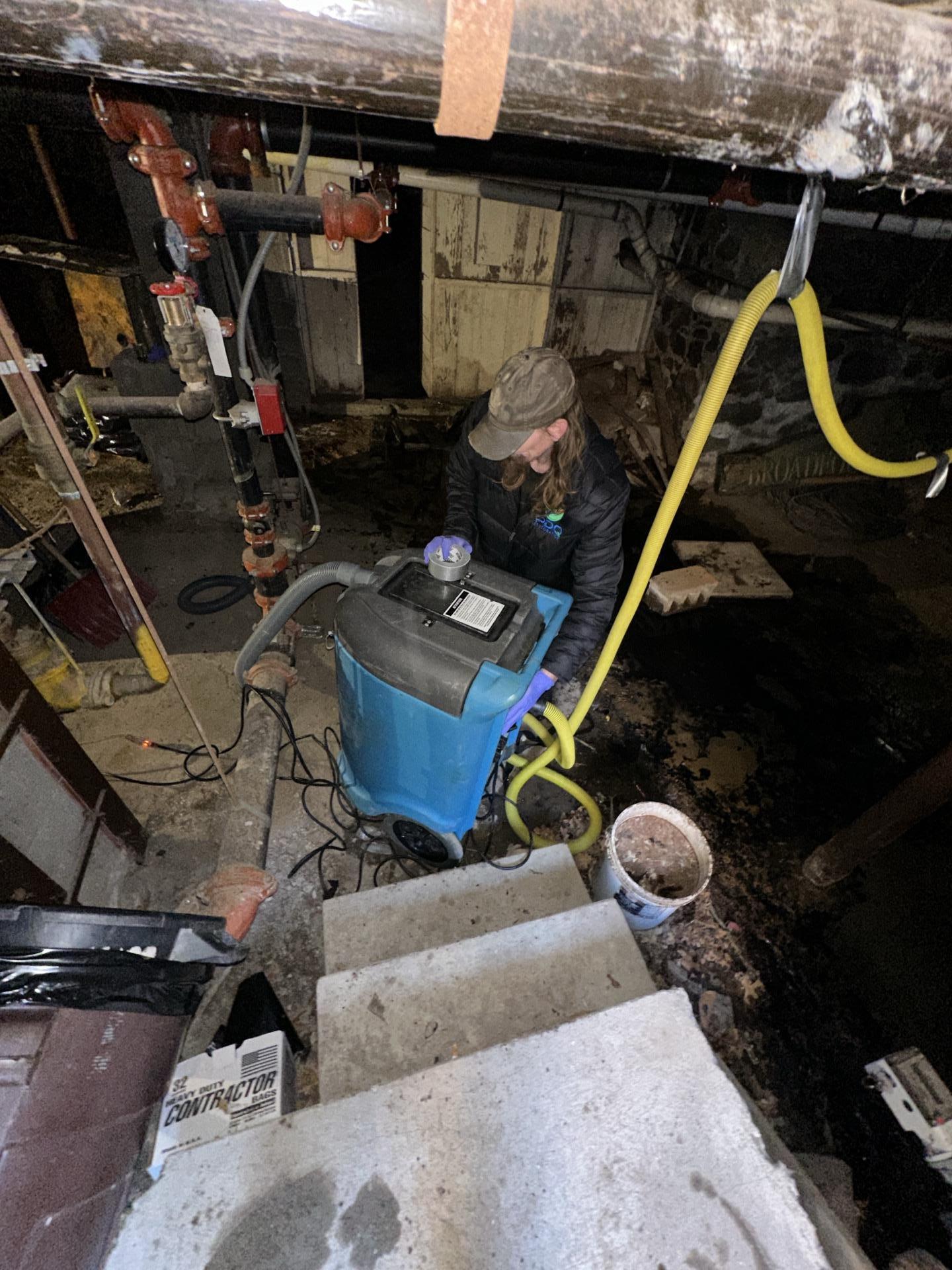When the PDQ team arrived at the Chatham, NJ property, they immediately began extracting the water using high-capacity pumps and wet vacs. The basement was filled with furniture, boxes, and storage bins, so contents were carefully sorted—salvageable items were removed, cleaned, and dried, while unsalvageable items were documented for insurance and discarded. PDQ technicians then began a thorough drying process using industrial-grade dehumidifiers and air movers to address both visible wet areas and hidden moisture within walls and insulation.