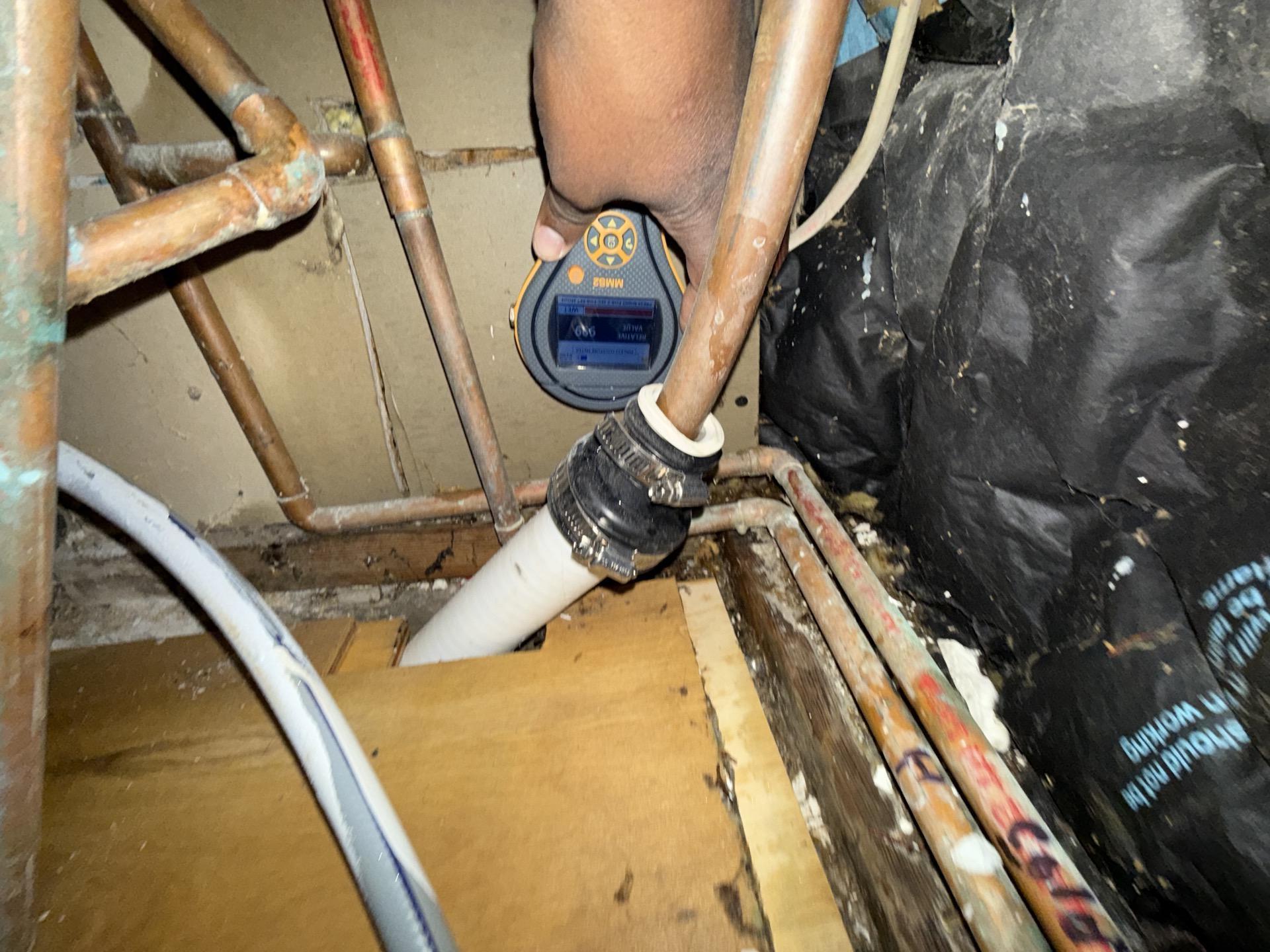 After removal, all exposed surfaces were scrubbed and treated with powerful antimicrobial solutions to kill any remaining mold and prevent regrowth. Dehumidifiers and air movers were set up to dry the area thoroughly, and we monitored moisture levels daily to confirm that the space was completely dry and mold-free. Our team then cleaned and sanitized the floor and surrounding areas to restore a safe environment. Throughout the process, we worked closely with Eric and documented all damage for his insurance provider.