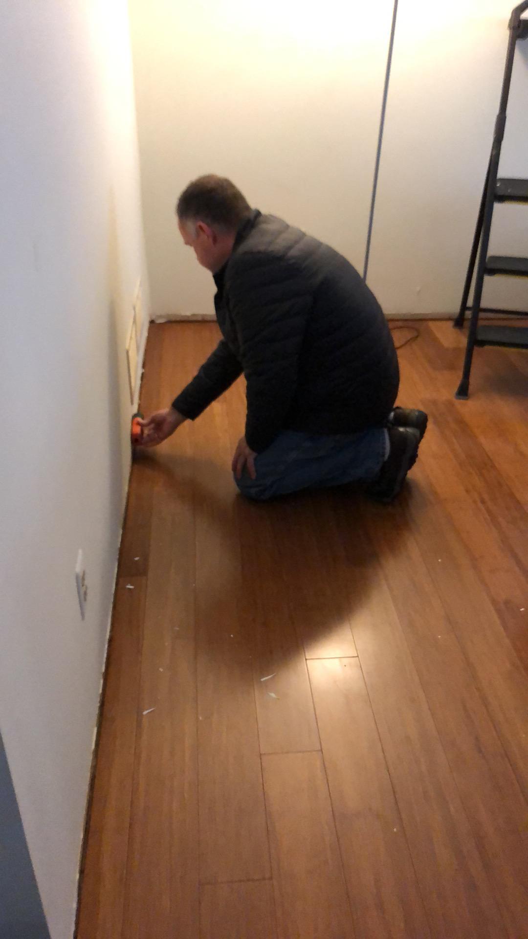 We then removed the damaged sections of the wall and floor, extracting hidden water from underneath the hardwood using specialty drying mats. Industrial-grade air movers and dehumidifiers were placed within the containment zone to draw out trapped moisture and humidity. Throughout the process, we monitored moisture levels daily to ensure that the environment was no longer damp and that all wet materials were either fully dried or replaced. Once the area was dry, we cleaned and sanitized all exposed surfaces to ensure the space was safe and free from bacteria or mold spores.