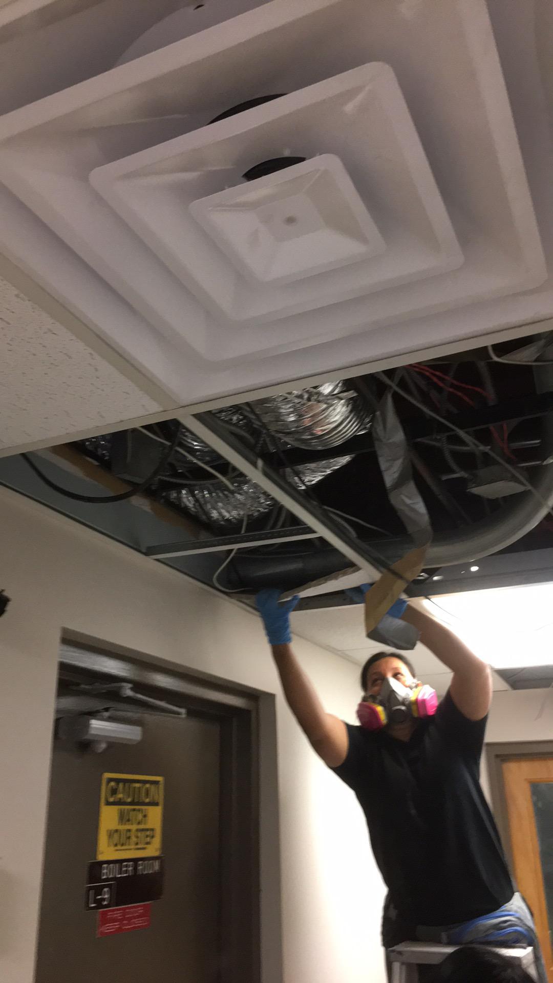 Our technicians began Soot Removal using advanced dry-chemical sponges and HEPA vacuums, carefully cleaning ceiling tiles, HVAC grilles, and high-touch surfaces. Every section of the drop ceiling was cleaned or replaced as necessary. We also applied odor-neutralizing treatments and thermal fogging throughout the Summit school hallways to eliminate lingering smoke odors. All restoration work followed school safety standards, and indoor air quality was tested throughout the process to ensure a safe return for students.