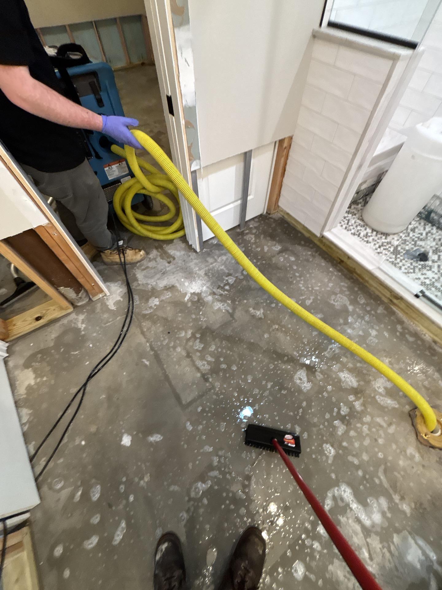 Michelle T. experienced a severe sewage backup in her Andover home when a clogged main sewer line caused the toilet to overflow, flooding both the bathroom and shower area. The contaminated water posed an immediate health hazard and required emergency sewage removal and professional disinfecting services. PDQ responded swiftly to the Andover residence to begin hazardous waste cleanup, removing affected materials and performing complete sanitation of the impacted areas. The bathroom floor, subfloor, and surrounding fixtures underwent thorough extraction and cleaning to eliminate bacteria and sewage residue. Specialized air scrubbers and dehumidifiers were deployed to prevent microbial growth and deodorize the space.