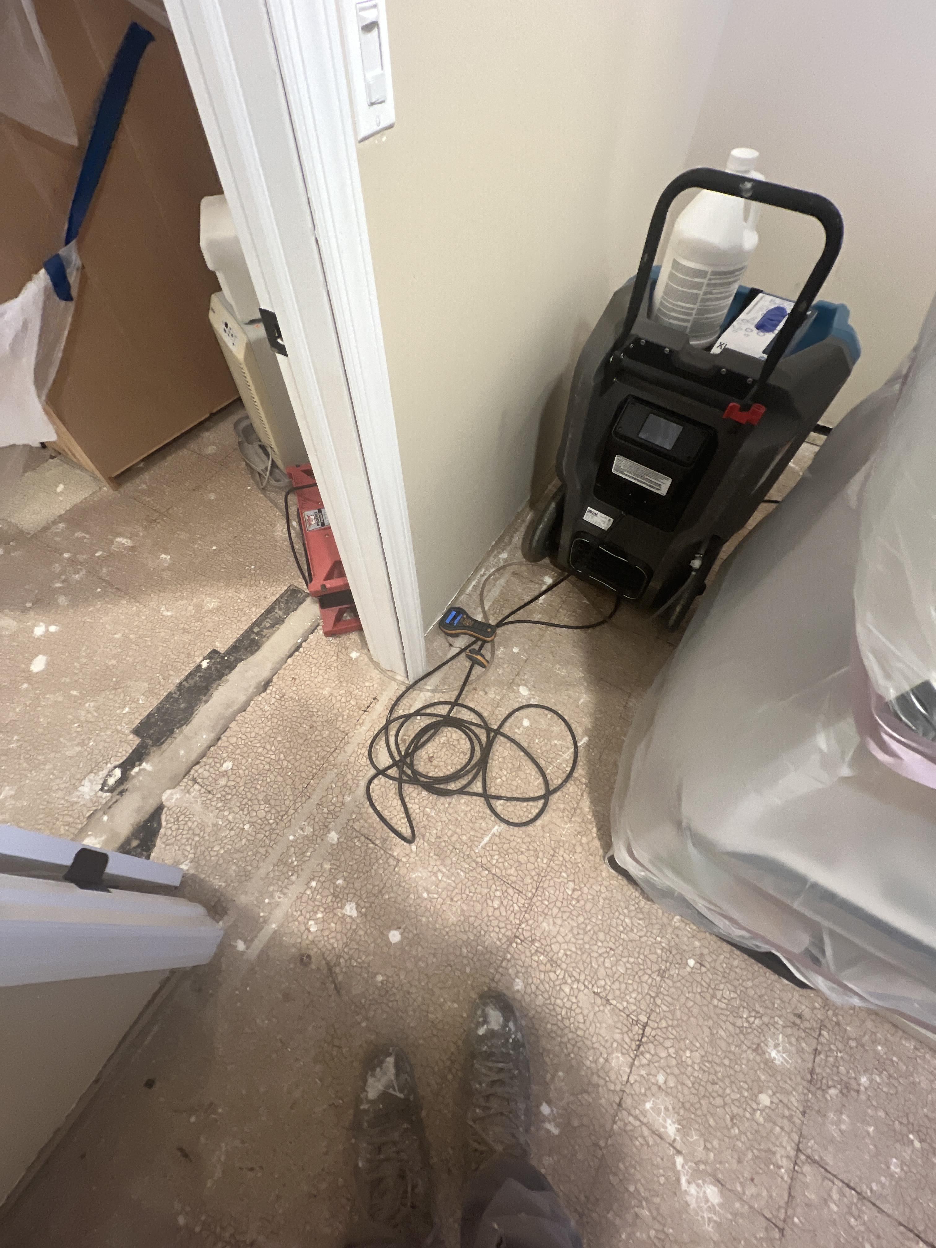 Burst pipes in basement bathrooms are a frequent cause of sudden water damage in Fort Lee homes, especially in winter months or older plumbing systems. In this case, PDQ technicians deployed commercial-grade air movers and dehumidifiers to dry the affected bathroom and surrounding areas, preventing mold growth and long-term deterioration. Moisture mapping ensured that hidden moisture in subfloors and behind wall cavities was fully addressed. The bathroom was sanitized with antimicrobial treatments, and the homeowner’s insurance policy covered the water damage cleanup. This Fort Lee basement incident demonstrates the importance of prompt, professional water mitigation to restore safety and prevent costly secondary damage.