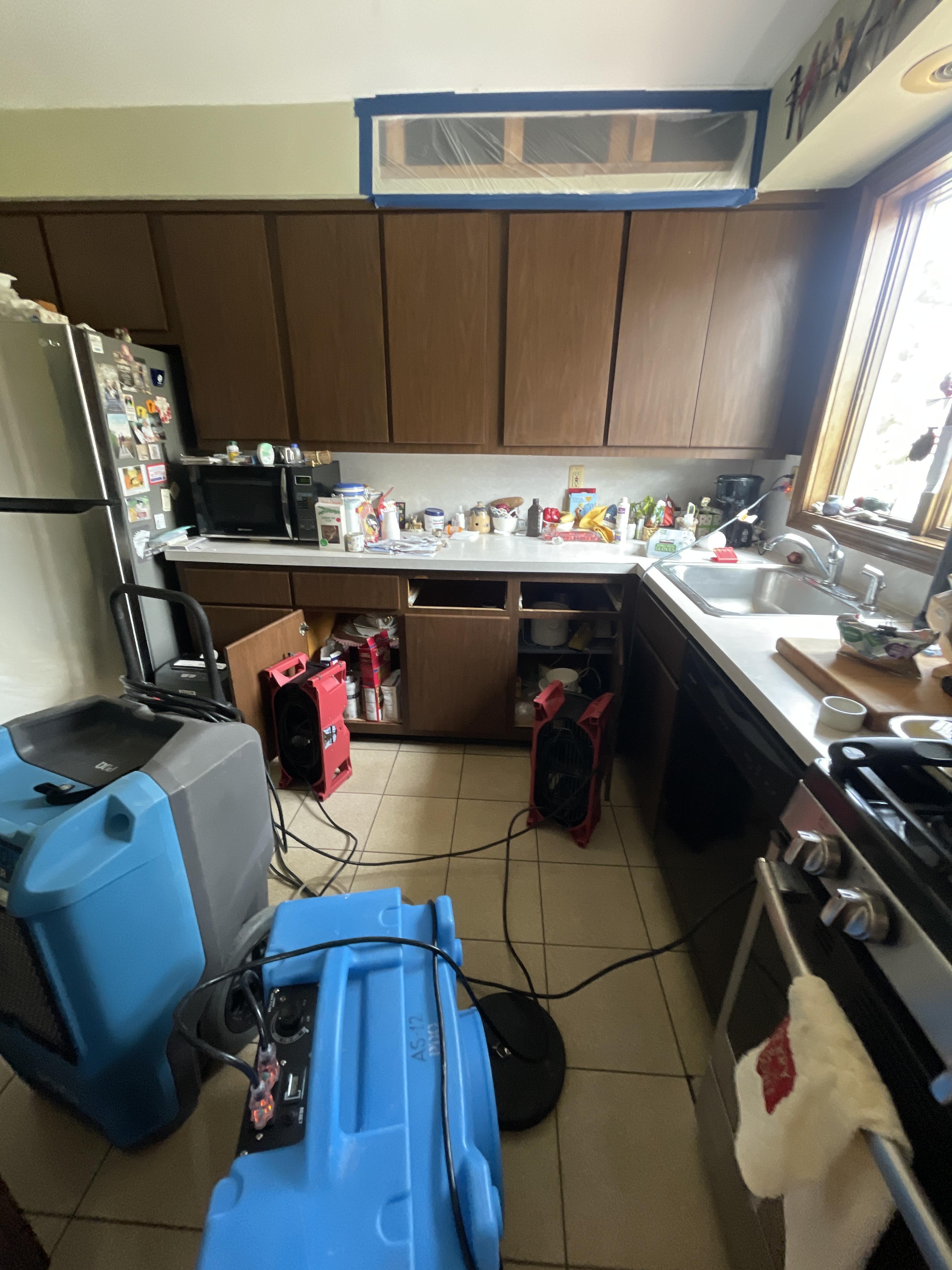 Our Manville, NJ restoration team removed the damaged base cabinets and began structural drying using commercial-grade dehumidifiers and injectidry systems to target moisture trapped in wall cavities. The job included inspection for wet insulation and subfloor damage, common in kitchen leak scenarios. We replaced affected sheetrock and applied antimicrobial treatments to prevent mold development. With wood floor water damage contained and monitored, we coordinated closely with the insurance adjuster to document each phase. The Manville home’s kitchen was fully restored with dry, clean, and safe conditions verified through final moisture readings. This job highlights how hidden kitchen leaks in Manville, NJ can lead to significant damage if not addressed promptly.