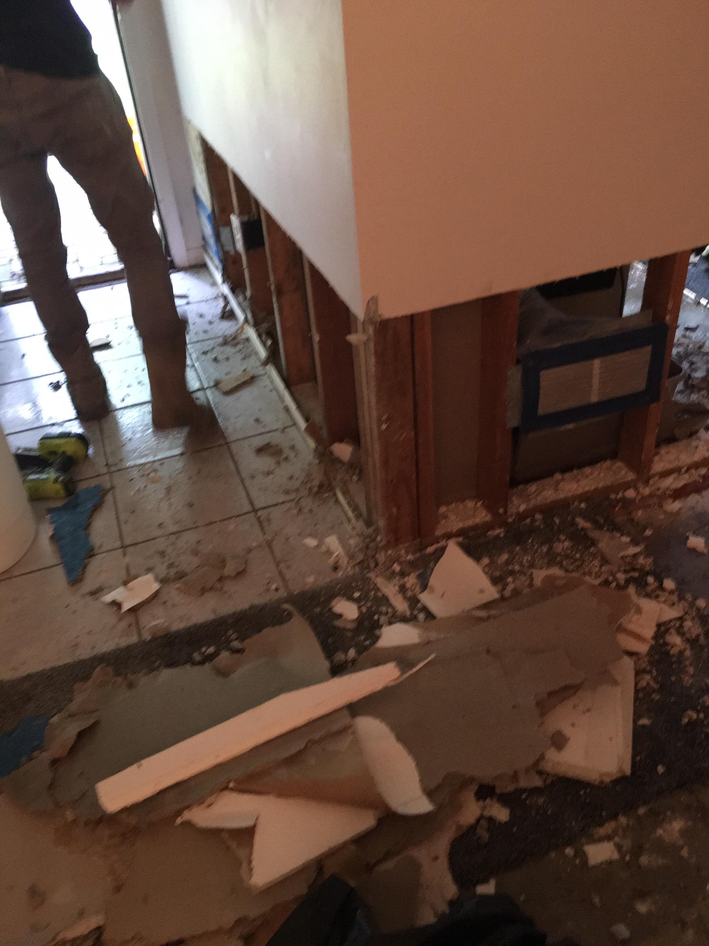 During the water damage restoration in Parsippany, NJ, we removed sections of damaged flooring and set up dehumidifiers and air movers to accelerate structure drying. Cabinet toe-kicks were detached to allow airflow behind the cabinetry, while moisture readings guided the remediation process in both the kitchen and living room. Wet drywall near the refrigerator wall was cut back and replaced once the area dried. In Parsippany, NJ, refrigerator line leaks are a common cause of hidden water damage, often requiring detailed restoration steps to prevent mold. The affected areas were restored to pre-loss condition following a full inspection and drying protocol.
