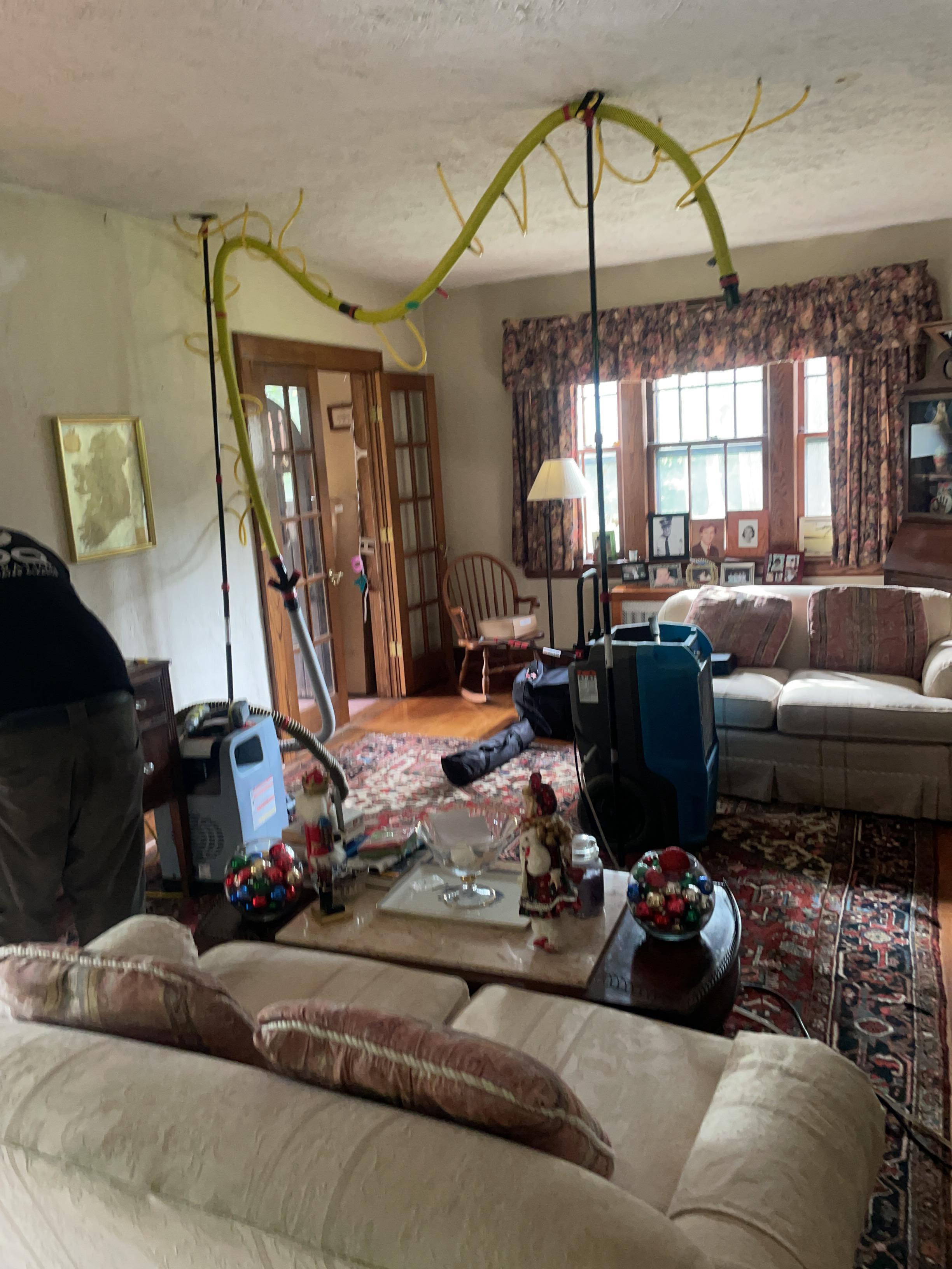 At the Morristown, NJ property, we installed ceiling drying mats and used targeted air movers and dehumidifiers to dry the area in place. The water-damaged ceiling was treated with antimicrobial agents, and our technicians used moisture meters daily to ensure complete drying. Since no structural removal was necessary, the living room was preserved without the need for drywall replacement. Water damage restoration in Morristown, NJ often benefits from non-invasive drying techniques when caught early. This job highlighted the effectiveness of drying in place methods for minor pipe leaks in overhead areas.