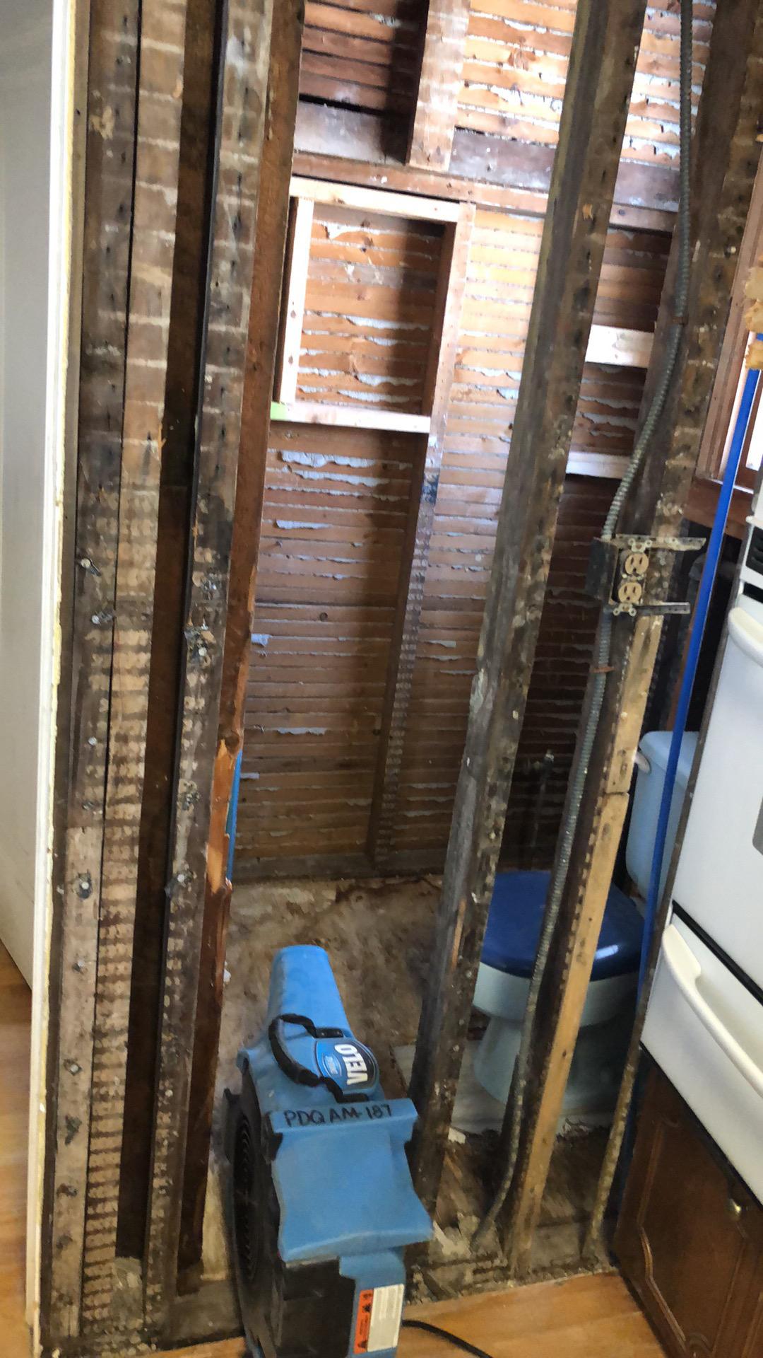 This Denville water damage restoration involved detailed documentation for the homeowner’s insurance claim, which covered the full scope of demolition and structural drying. Once dry-out was confirmed with thermal imaging and moisture readings, the area was treated with anti-microbial spray to prevent mold growth. The broken pipe was repaired prior to reconstruction, and structural materials were evaluated for long-term integrity. PDQ’s team ensured every surface in the Denville bathroom was properly dried and sanitized before any rebuild. This case highlights how a ceiling pipe failure in Denville, NJ can lead to a full bathroom tear-out, requiring fast, professional intervention to mitigate extensive water damage.