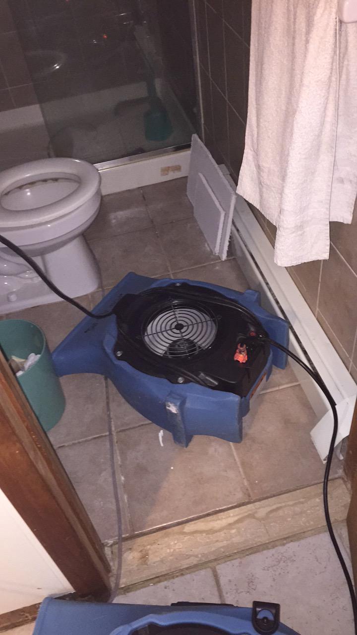 Water damage restoration in Mount Olive, NJ included targeted demolition of the wet drywall, removal of saturated insulation, and application of antimicrobial treatments to prevent mold growth in enclosed spaces. The bathroom tile was dried in place, and air movers and dehumidifiers were strategically placed to accelerate the drying of the subfloor and surrounding materials. Since the loss resulted from a sudden plumbing failure, the homeowner’s insurance policy covered the full mitigation and repair scope. This burst pipe incident in Mount Olive, NJ demonstrates how quickly water damage can spread behind walls and under bathroom tile, requiring fast, professional cleanup. The Mount Olive, NJ property was fully restored following comprehensive water damage restoration and drying services.