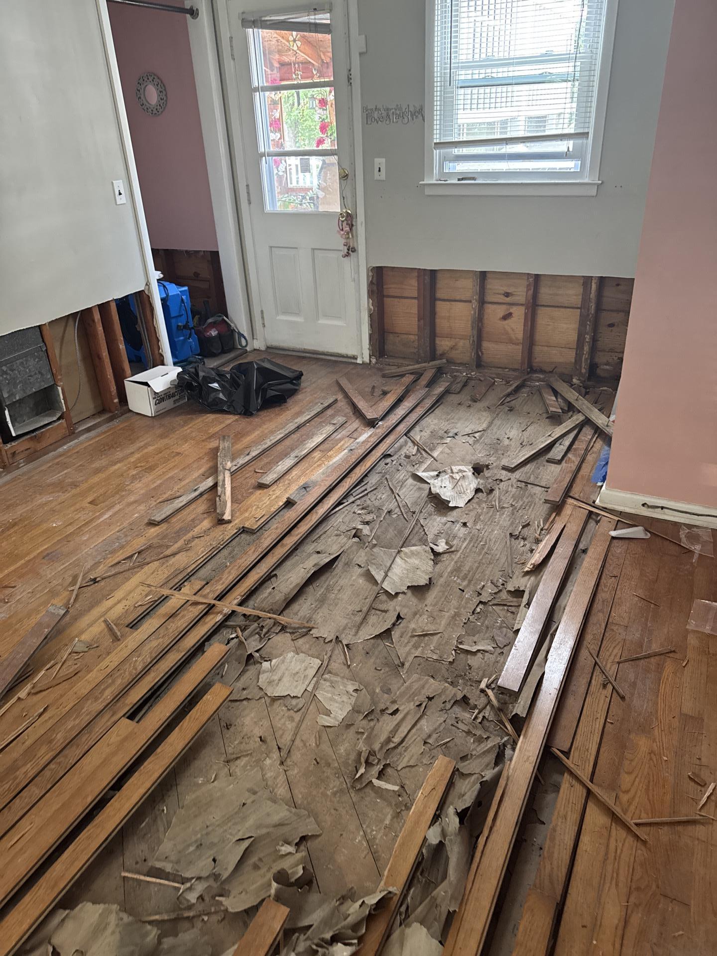 Emily R. contacted PDQ Fire & Water Damage Restoration after discovering significant water damage in her home in Boonton, NJ caused by a long-term water pipe break behind an exterior wall. The hidden leak saturated the subfloor and led to severe wood floor water damage, wet insulation, and moisture intrusion into wall cavities throughout the affected area of the Boonton, NJ property. Our team began emergency water damage cleanup in Boonton, NJ by performing detailed moisture mapping and controlled demolition to remove compromised hardwood flooring and base materials. Water extraction equipment and high-capacity drying systems were installed to address trapped moisture and prevent secondary mold growth. The cause of loss was determined to be a failed supply line, and the water damage restoration work in Boonton, NJ was covered by the homeowner’s insurance policy. All damaged materials were documented to support the water damage insurance claim and ensure proper restoration planning.