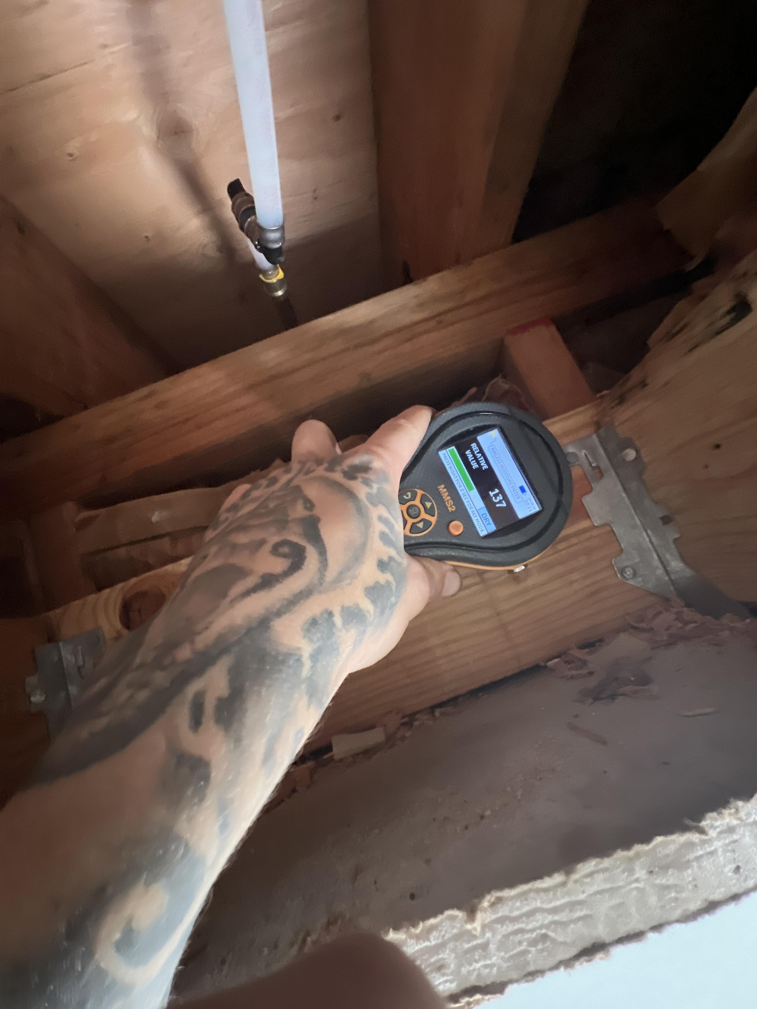 Michael R. contacted PDQ after discovering active water damage in his Randolph, NJ home caused by a leaking plumbing connection within the ceiling cavity, resulting in wet insulation and moisture intrusion into the framing. The water loss in Randolph, NJ was traced to a slow pipe leak that saturated wood framing and drywall before becoming visible, requiring immediate Water Extraction and water damage mitigation. Our team performed a detailed moisture inspection using thermal imaging and moisture meters to identify the full scope of hidden water damage in the Randolph, NJ property. Affected ceiling materials were carefully opened to access the source, followed by controlled water removal to prevent further spread. Wet insulation was removed, and exposed structural components were treated as part of the water damage restoration process. This Randolph, NJ water damage cleanup was covered by the homeowner’s insurance policy, and documentation was provided for the water damage insurance claim.